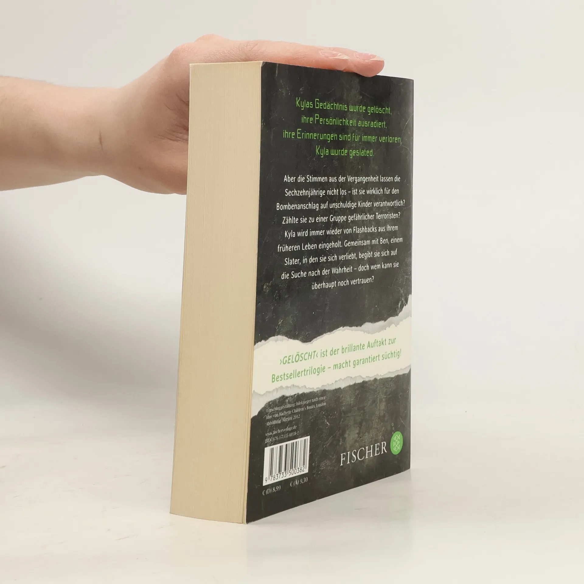 Der erste Band der Erfolgstrilogie endlich im Taschenbuch Kylas Gedächtnis wurde gelöscht, ihre Persönlichkeit ausradiert, ihre Erinnerungen sind für immer verloren. Kyla wurde »geslated«. Aber die Stimmen aus der Vergangenheit lassen die Sechzehnjährige nicht los – hat sie wirklich unschuldige Kinder bei einem Bombenanschlag getötet? Zählte sie zu einer Gruppe von gefährlichen Terroristen? Und warum steht ein Bild von ihr auf einer geheimen Webseite mit vermissten Kindern? Kyla wird immer wieder von Flashbacks aus ihrem früheren Leben eingeholt und merkt allmählich, dass ihre wahre Identität ein großes Geheimnis birgt. Gemeinsam mit Ben, einem anderen Slater, in den sie sich verliebt, begibt sie sich auf die Suche nach der Wahrheit – doch wem kann sie überhaupt noch vertrauen?