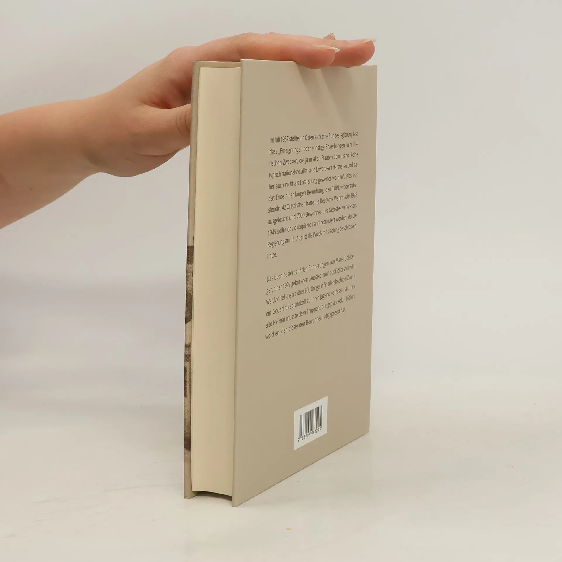 Im Juli 1957 stellte die Österreichische Bundesregierung fest, dass „Enteignungen oder sonstige Erwerbungen zu militärischen Zwecken, die ja in allen Staaten üblich sind, keine typisch nationalsozialistische Erwerbsart darstellen und daher auch nicht als Entziehung gewertet werden“. Dies war das Ende einer langen Bemühung, den TÜPL wieder zu besiedeln. 42 Ortschaften hatte die Deutsche Wehrmacht 1938 ausgelöscht und 7000 Bewohner des Gebietes verwiesen. 1945 sollte das okkupierte Land restituiert werden, da die Regierung am 15. August die Wiederbesiedlung beschlossen hatte. Das Buch basiert auf den Erinnerungen von Maria Geisberger, einer 1927 geborenen „Aussiedlerin“ aus Döllersheim im Waldviertel, die als über 60-Jährige in Friedersbach bei Zwettl ein Gedächtnisprotokoll zu ihrer Jugend verfasst hat. Ihre alte Heimat musste dem Truppenübungsplatz Adolf Hitlers weichen, den dieser den Bewohnern abgepresst hat.