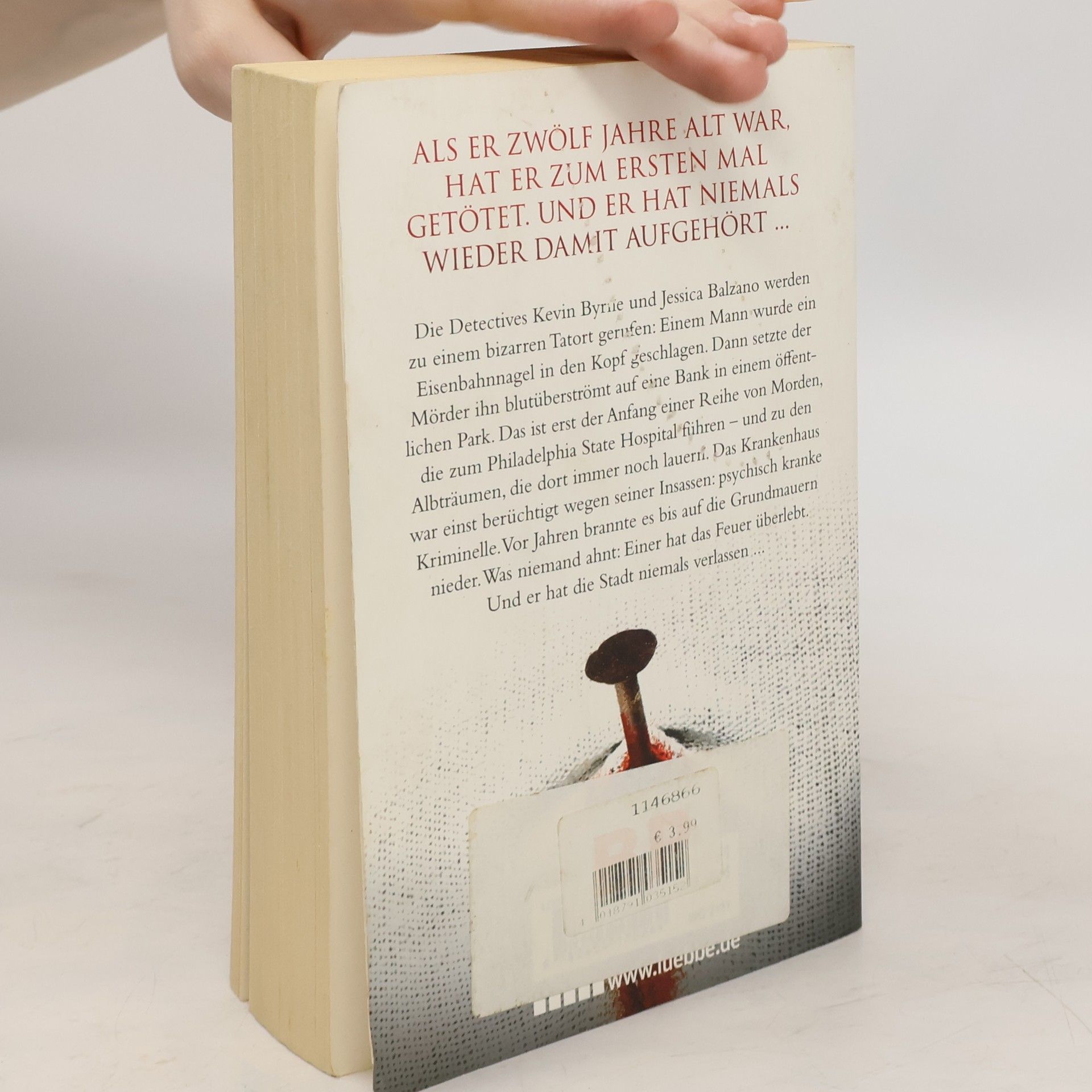 Die Detectives Kevin Byrne und Jessica Balzano werden zu einem bizarren Tatort gerufen: Einem Mann wurde ein Eisenbahnnagel in den Kopf geschlagen. Dann setzte der Mörder ihn blutüberströmt auf eine Bank in einem öffentlichen Park. Das ist erst der Anfang einer Reihe von Morden, die zum Philadelphia State Hospital führen - und zu den Albträumen, die dort immer noch lauern. Das Krankenhaus war einst berüchtigt wegen seiner Insassen: psychisch kranke Kriminelle. Vor Jahren brannte es bis auf die Grundmauern nieder. Was niemand ahnt: Einer hat das Feuer überlebt. Und er hat die Stadt niemals verlassen ...