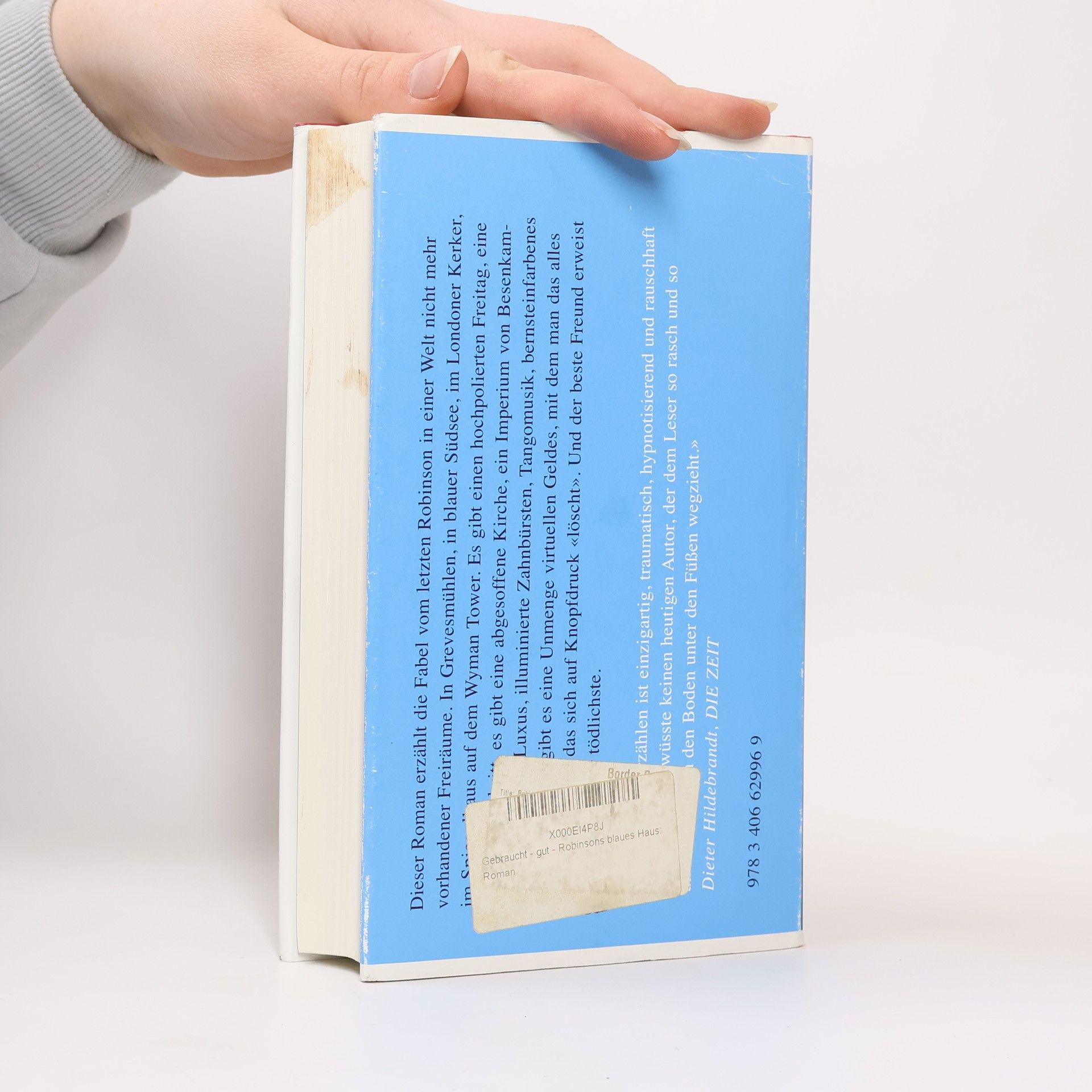 Es ist die Fabel vom letzten Robinson in einer Welt nicht mehr vorhandener Freiräume. In Grevesmühlen, in blauer Südsee, im Londoner Kerker, im Spiegelhaus auf dem Wyman Tower. Es gibt einen hochpolierten Freitag, eine Dame mit Schritt, es gibt eine abgesoffene Kirche, ein Imperium von Besenkammern und es gibt Luxus, illuminierte Zahnbürsten, Tangomusik, bernsteinfarbenes Licht. Vor allem gibt es eine Unmenge virtuellen Geldes, mit dem man das alles kaufen kann und das sich auf Knopfdruck „löscht“. Und der beste Freund erweist sich dann als der tödlichste. Eine letzte Robinsonade, ja, aber eine poetische von nie gesehener Farbigkeit, genau so – der Autor ist seit drei Jahren erblindet.