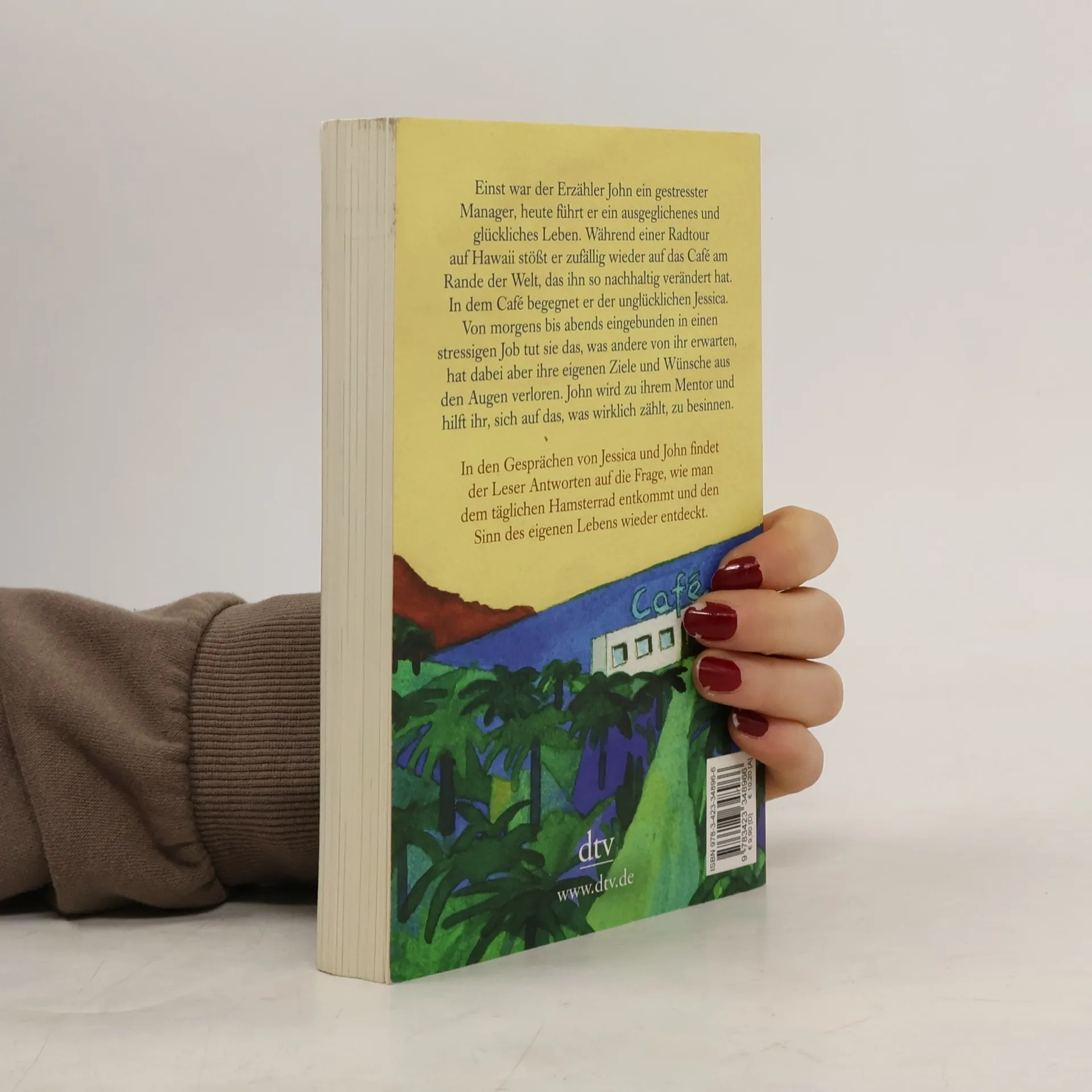 Inspirationen fürs eigene Leben Einst war der Erzähler John ein gestresster Manager, heute führt er ein ausgeglichenes und glückliches Leben. Während einer Radtour auf Hawaii erinnert sich John an den Tag vor zehn Jahren, der sein Leben radikal verändert hat. Damals war er zufällig auf das Café am Rande der Welt gestoßen. Und obwohl er sich an einem völlig anderen Ort befindet, Tausende Kilometer entfernt, sieht er es plötzlich wieder. In dem Café begegnet er Jessica, die unglücklich mit ihrem Leben ist. Eingebunden in ein stressiges Arbeitsleben, tut sie das, was andere von ihr erwarten, hat dabei aber ihre eigenen Ziele und Wünsche aus den Augen verloren. John wird zu ihrem Mentor und hilft ihr, sich auf den Sinn ihres Lebens zu besinnen. In den Gesprächen von Jessica und John findet der Leser Antworten auf die Frage, wie man dem täglichen Hamsterrad entkommt und den Sinn des eigenen Lebens wieder entdeckt. Wunderbar vierfarbig illustriert von Root Leeb.