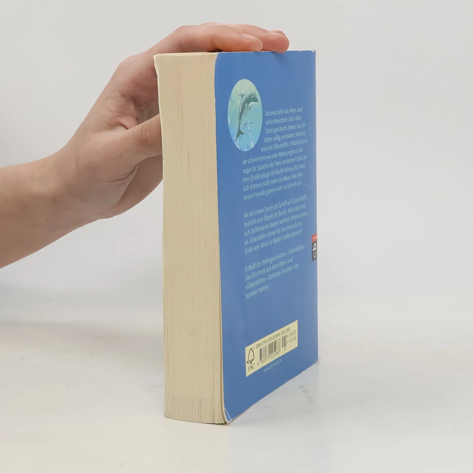 Die Welttagseditionen bei cbjAntonia kann dank eines Delfinamuletts schwimmen und tauchen wie eine Meerjungfrau und die Sprache der Delfine verstehen! Sie ist für eine besondere Aufgabe auserwählt, denn Antonia ist ein Silberdelfin – eine Beschützerin der Delfine und aller anderen Meereslebewesen in ihrer Bucht. Wenn die Delfine in Gefahr geraten, muss Antonia zur Stelle sein und ihren Freunden helfen. Enthält die Delfingeschichten „Silberdelfine – Das Geschenk aus dem Meer“ und „Silberdelfine – Geheime Freunde“.