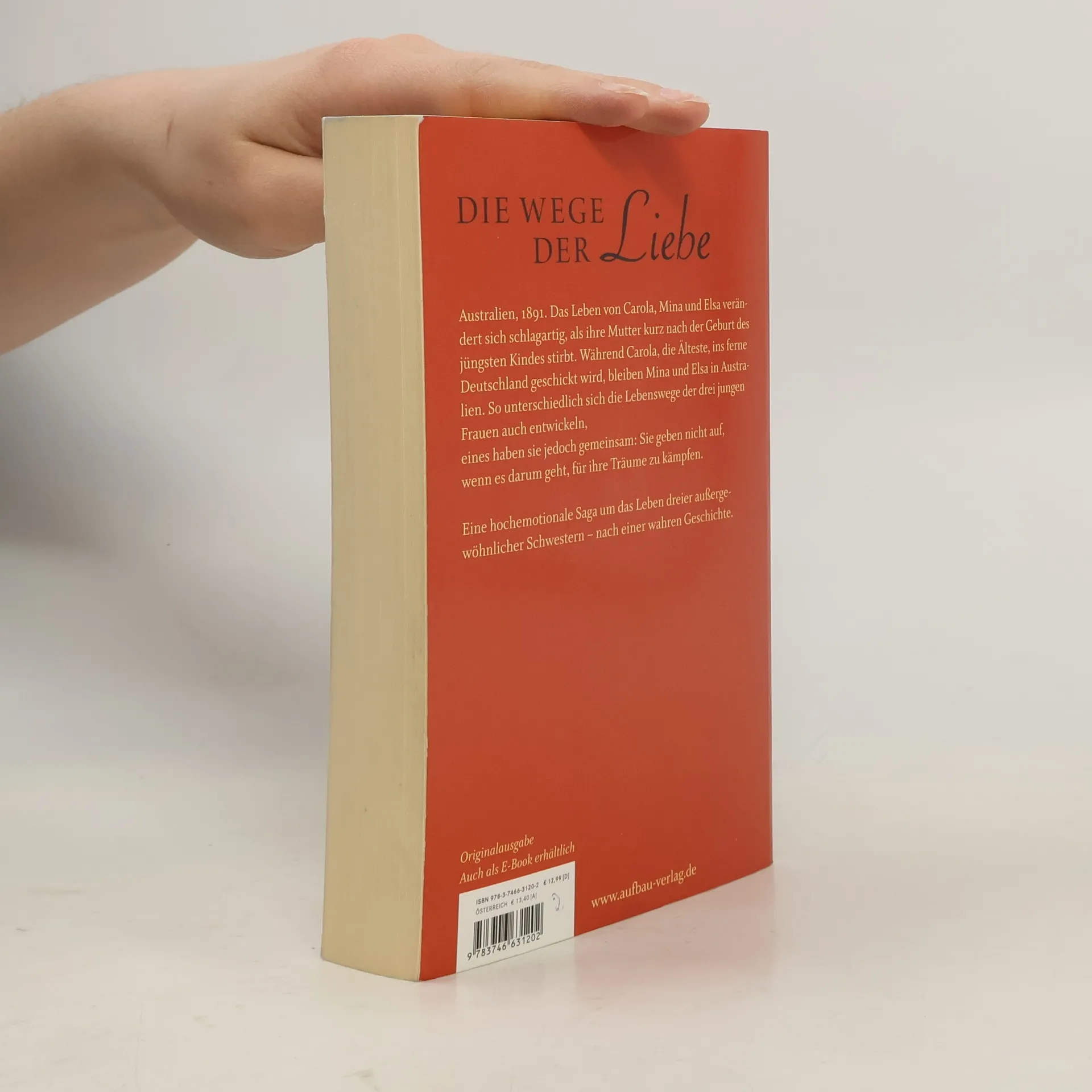 Die Wege der Liebe Australien, 1891. Das Leben von Carola, Mina und Elsa verändert sich schlagartig, als ihre Mutter kurz nach der Geburt des jüngsten Kindes stirbt. Während Carola, die Älteste, ins ferne Deutschland geschickt wird, bleiben Mina und Elsa in Australien. So unterschiedlich sich die Lebenswege der drei jungen Frauen auch entwickeln, eines haben sie jedoch gemeinsam: Sie geben nicht auf, wenn es darum geht, für ihre Träume zu kämpfen. Eine hochemotionale Saga um das Leben dreier außergewöhnlicher Schwestern – nach einer wahren Geschichte.