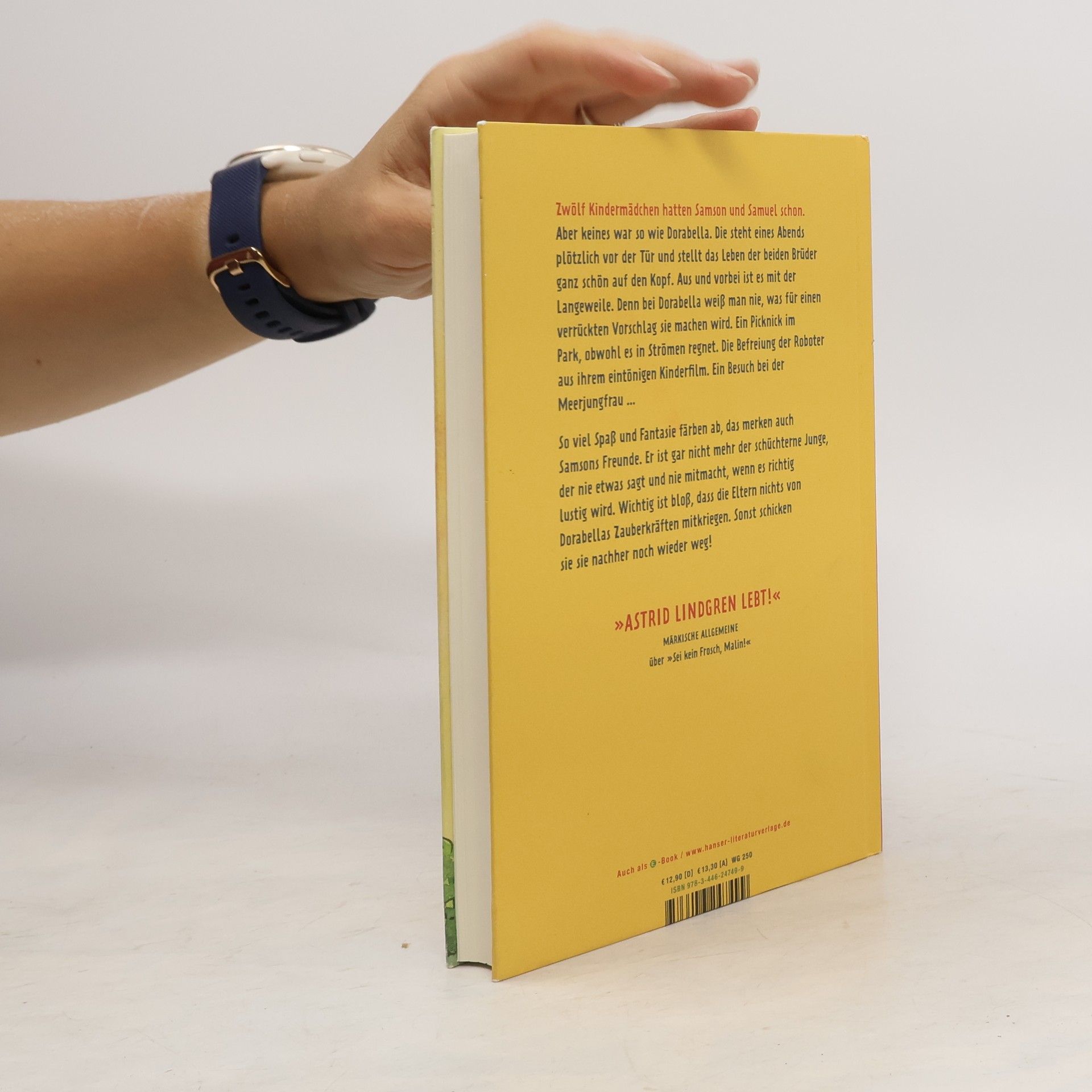 Zwölf Kindermädchen hatten Samson und Samuel schon. Aber keines war wie Dorabella. Die stellt das Leben der Brüder ganz schön auf den Kopf, denn bei ihr weiß man nie, was für einen verrückten Vorschlag sie machen wird. Ein Picknick im Park, obwohl es in Strömen regnet. Die Befreiung der Roboter aus einem eintönigen Kinderfilm. Ein Besuch bei der Meerjungfrau auf dem Buddelschiff … So viel Fantasie färbt ab, das merken auch die anderen Jungen. Samson ist gar nicht mehr der schüchterne Junge, der nie mitmacht, wenn es richtig lustig wird. Bloß die Eltern dürfen nichts von der Magie mitkriegen, sonst schicken sie Dorabella wieder weg! Ein zauberhaftes Kinderbuch mit Illustrationen von Leonard Erlbruch.
