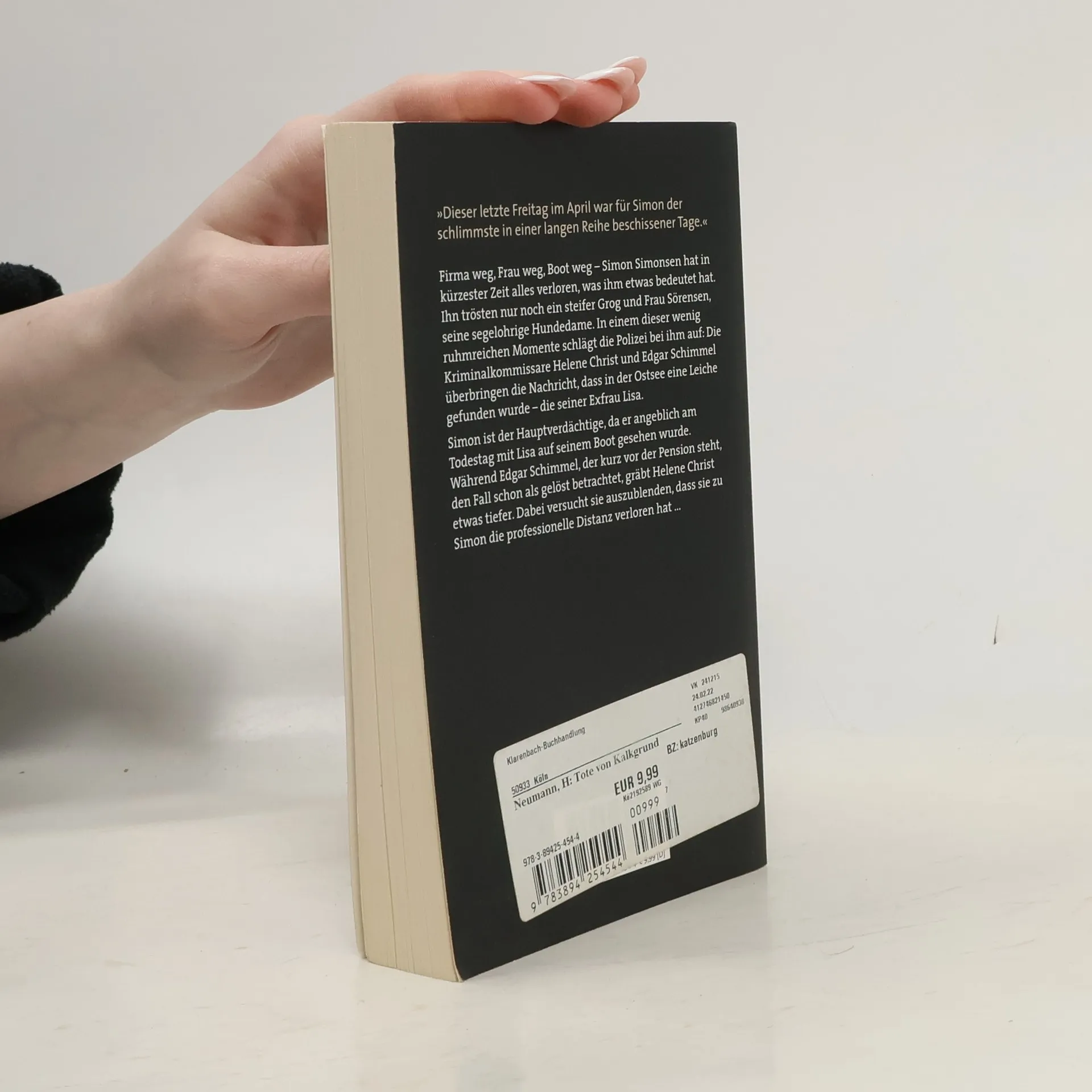 'Dieser letzte Freitag im April war für Simon der schlimmste in einer langen Reihe beschissener Tage.' Firma weg, Frau weg, Boot weg – Simon Simonsen hat in kürzester Zeit alles verloren, was ihm etwas bedeutet hat. Ihn trösten nur noch ein steifer Grog und Frau Sörensen, seine segelohrige Hundedame. In einem dieser wenig ruhmreichen Momente schlägt die Polizei bei ihm auf: Die Kriminalkommissare Helene Christ und Edgar Schimmel überbringen die Nachricht, dass in der Ostsee eine Leiche gefunden wurde – die seiner Exfrau Lisa. Simon ist der Hauptverdächtige, da er angeblich am Todestag mit Lisa auf seinem Boot gesehen wurde. Während Edgar Schimmel, der kurz vor der Pension steht, den Fall schon als gelöst betrachtet, gräbt Helene Christ etwas tiefer. Dabei versucht sie auszublenden, dass sie zu Simon die professionelle Distanz verloren hat …