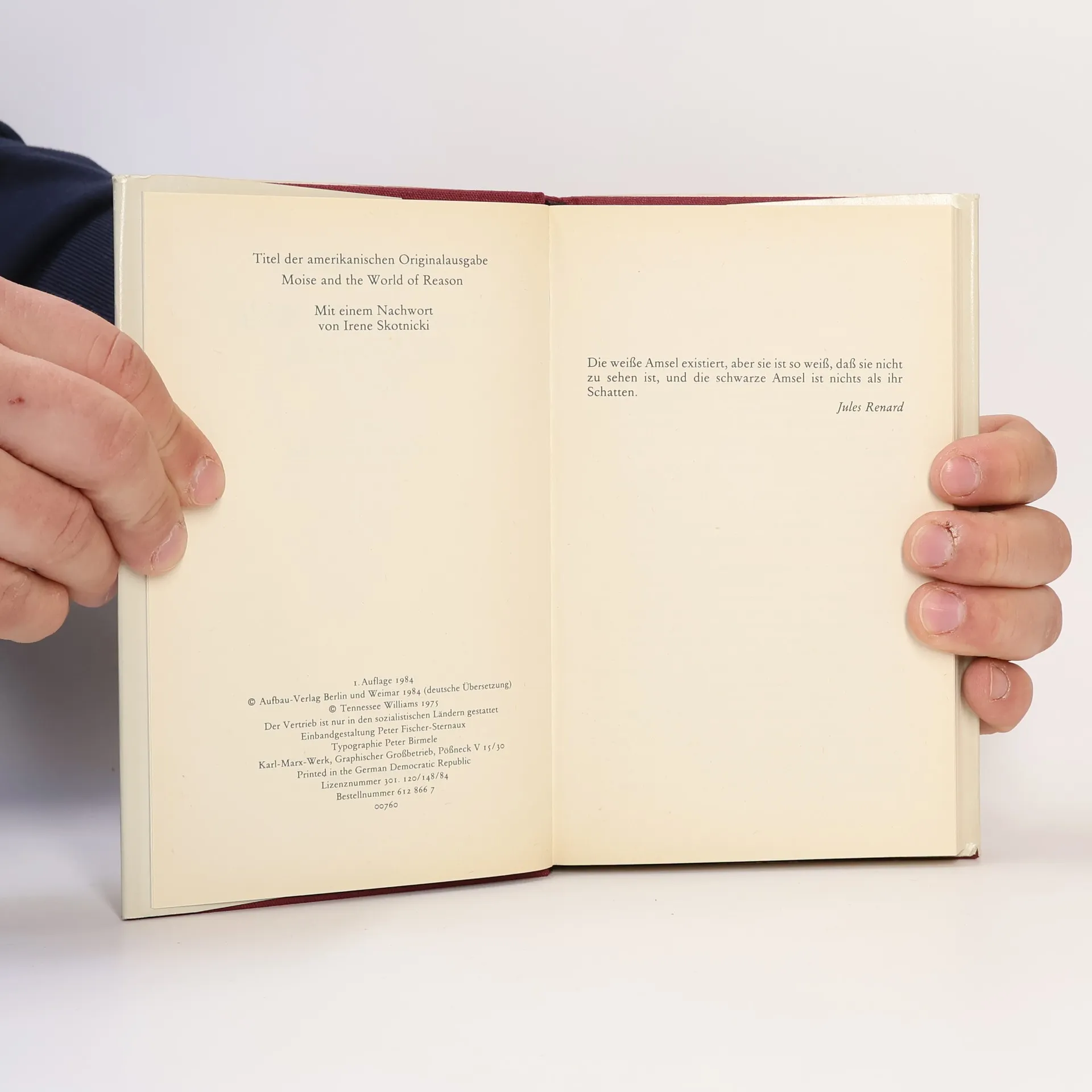 Moise und die Welt der Vernunft, Tennessee Williams