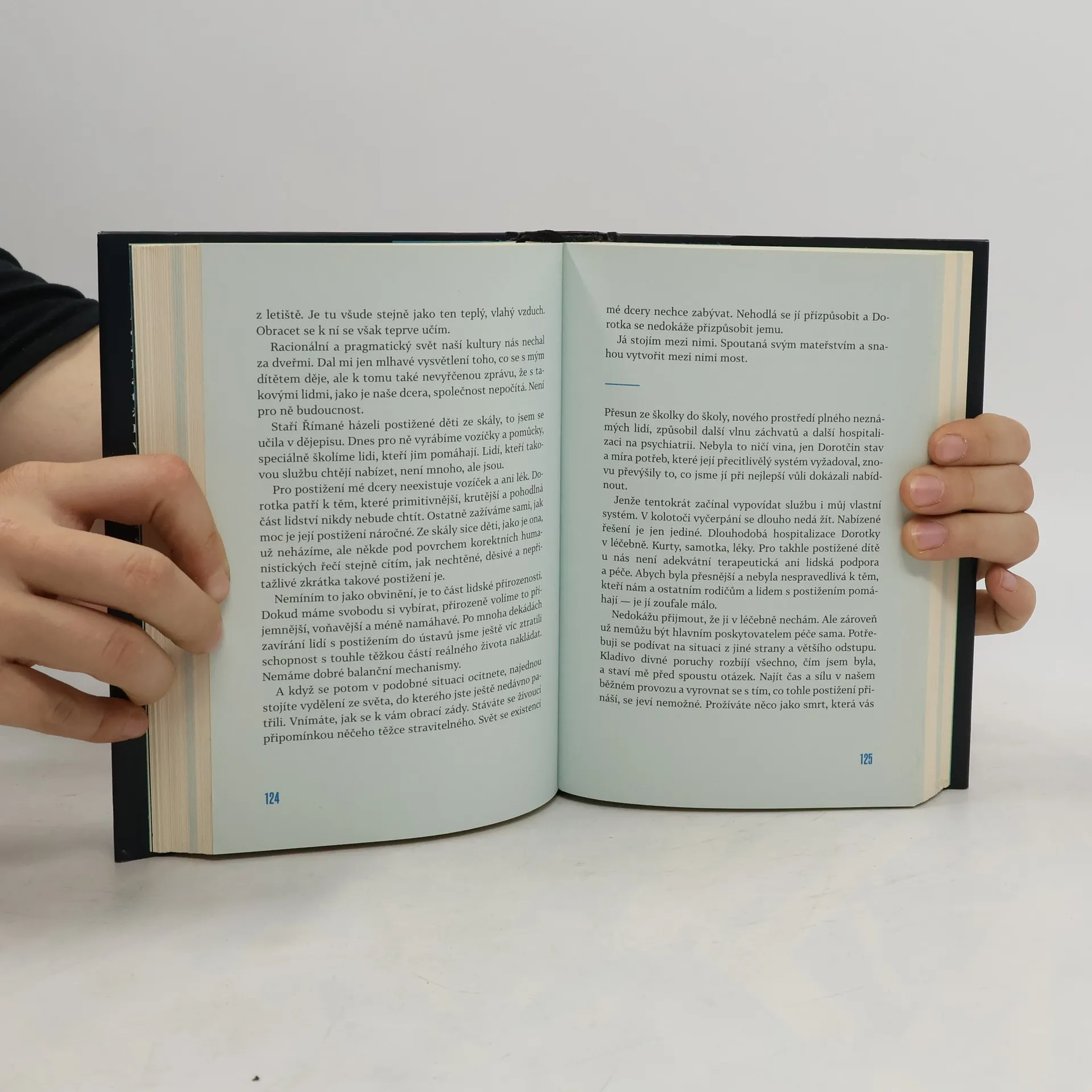 Kniha manželů Třešňákových vypráví příběh výchovy dcery s autismem spojeným s mentální retardací a vážnými projevy chování. Není primárně svědectvím o autismu, ale spíše o hledání rovnováhy v extrémně náročné životní situaci a vnitřním vyrovnávání se s narozením postiženého dítěte. Rodiče dnes čtrnáctileté Dorotky čtivou formou reflektují vnitřní proměnu, kterou jim roky nepřetržité péče přinesly, zachycují kouzelné momenty života s atypickým dítětem i děsivá dramata jeho neklidu a sebepoškozování. Text, v něž se prolíná perspektiva otce a matky, střídá vyprávění o každodenních situacích s psychologickou a spirituální reflexí.