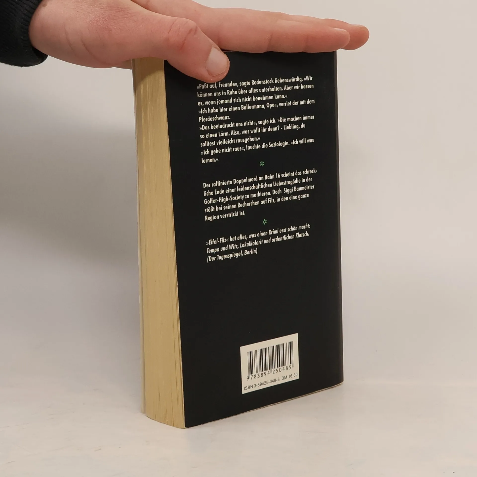 Der dritte Band der Eifel-Serie. Ein junges Pärchen wird auf Bahn sechzehn eines Golfplatzes tot aufgefunden. Waren sie Opfer eines Eifersuchtsdramas, wie die Mordkommission vermutet? - Siggi Baumeister stößt bei seinen Recherchen in der Eifler High Society auf einen Filz ungeheuren Ausmaßes. Nominiert für den ›Friedrich-Glauser-Preis‹. 'Am Anfang steht genregemäß ein Mord; ein doppelter gar, mit viel krimineller Energie auf dem Golfplatz ausgeführt. Dann hetzt der Autor sein private eye, den schnoddrigen Journalisten Siggi Baumeister, auf Tätersuche durch Städte und Dörfer der Eifel. Der Provinz- Reporter steht einem Philip Marlowe in nichts nach – wie dieser kommt Baumeister weder heldenhaft noch unversehrt aus der Geschichte heraus. Mit milder Ironie macht er sich über das Privateste der einfachen und komplizierteren Eingeborenen her, über ihr Liebes- und Geldleben.' (DIE WOCHE)