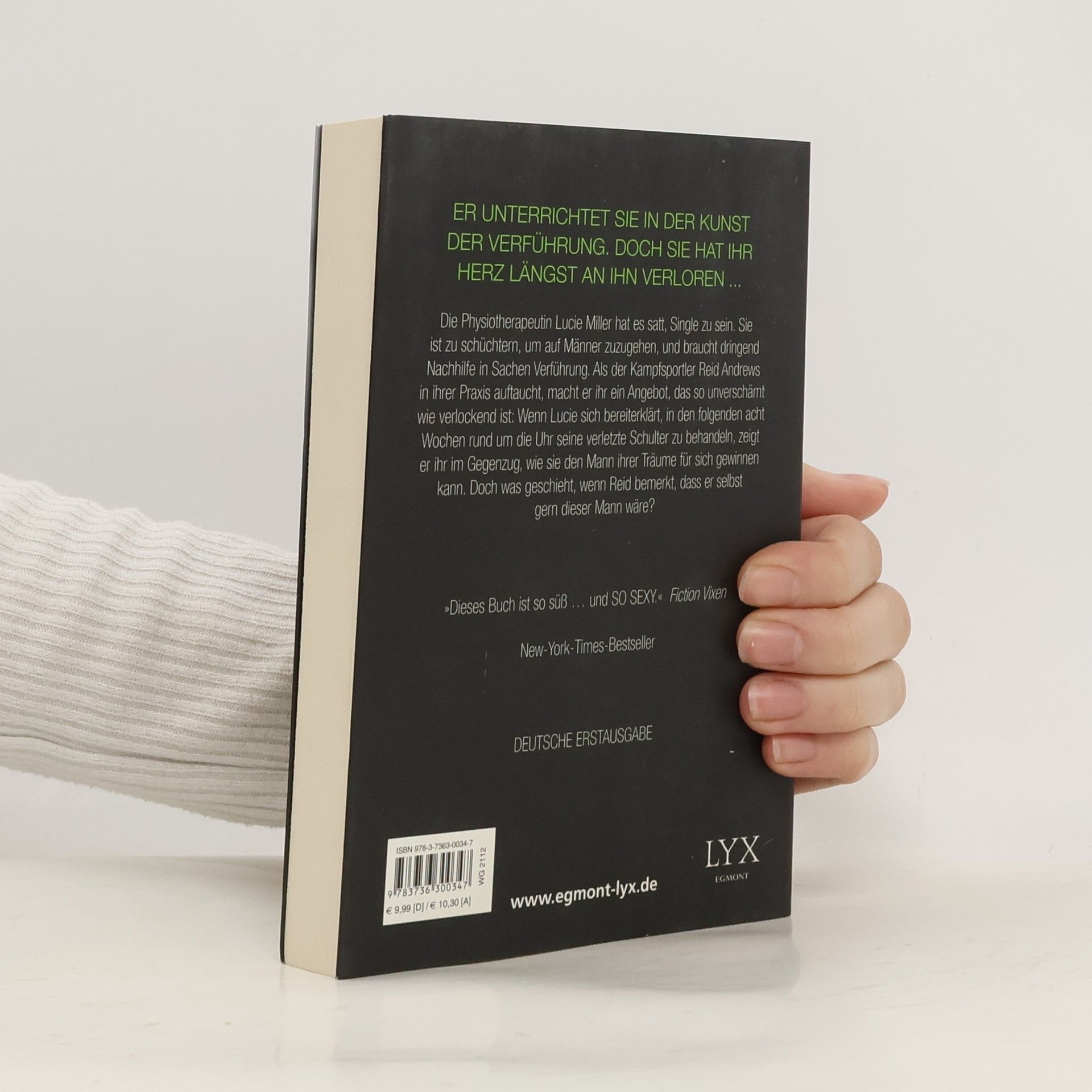 Der Bestseller aus den USA endlich auf deutsch! Die Physiotherapeutin Lucie Miller ist schon seit Jahren in einen befreundeten Kollegen verliebt. Doch dieser scheint sie nur als Kumpel, nie als Frau wahrzunehmen, und Lucie ist zu schüchtern, um selbst die Initiative zu ergreifen. Ihr Leben wird völlig auf den Kopf gestellt, als der Kampfsportler Reid Andrews in ihrer Praxis auftaucht. Um seine verletzte Schulter für einen wichtigen Kampf fit zu machen, benötigt er Lucies Hilfe, und zwar rund um die Uhr. Im Gegenzug für die Behandlung macht er ihr ein Angebot, das so unverschämt wie verlockend ist: Er bringt Lucie bei, wie sie den Mann ihrer Träume verführen und für sich gewinnen kann. Dumm nur, dass Reid sich mit jedem Tag und mit jeder Nacht, die die beiden miteinander verbringen, wünscht, selbst dieser Mann zu sein ...