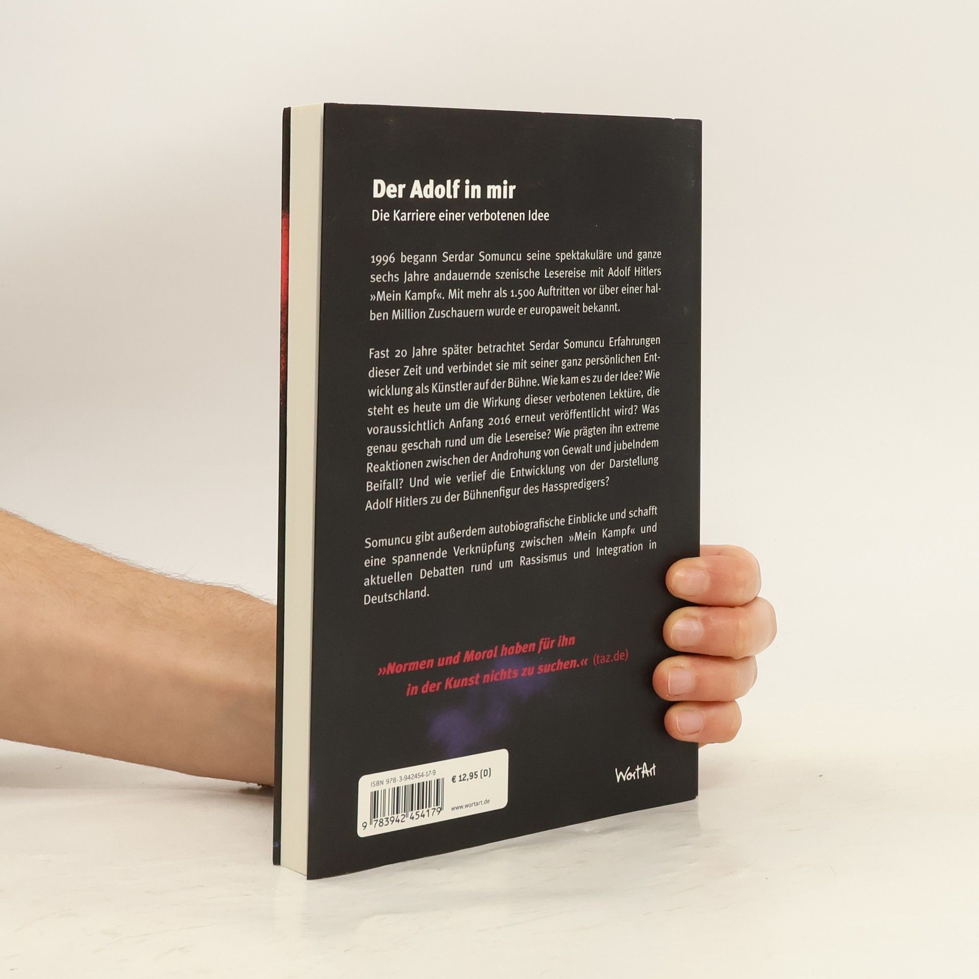 1996 begann Serdar Somuncu seine spektakuläre und ganze sechs Jahre andauernde szenische Lesereise mit Adolf Hitlers Mein Kampf. Mit mehr als 1.500 Auftritten vor über einer halben Million Zuschauern wurde er europaweit bekannt. Fast zwanzig Jahre später betrachtet er in Der Adolf in mir sehr persönliche Erfahrungen dieser Zeit. Wie kam es zu der Idee? Was genau geschah rund um die Lesereise? Und wie prägten ihn Reaktionen zwischen der Androhung von Gewalt und jubelndem Beifall? Er gibt außerdem biografische Einblicke und schafft eine spannende Verknüpfung zwischen Mein Kampf und aktuellen Debatten rund um Rassismus und Integration in Deutschland. Wie steht es heute um die Wirkung dieser verbotenen Lektüre, die voraussichtlich Anfang 2016 vor einer neuen Veröffentlichung steht?