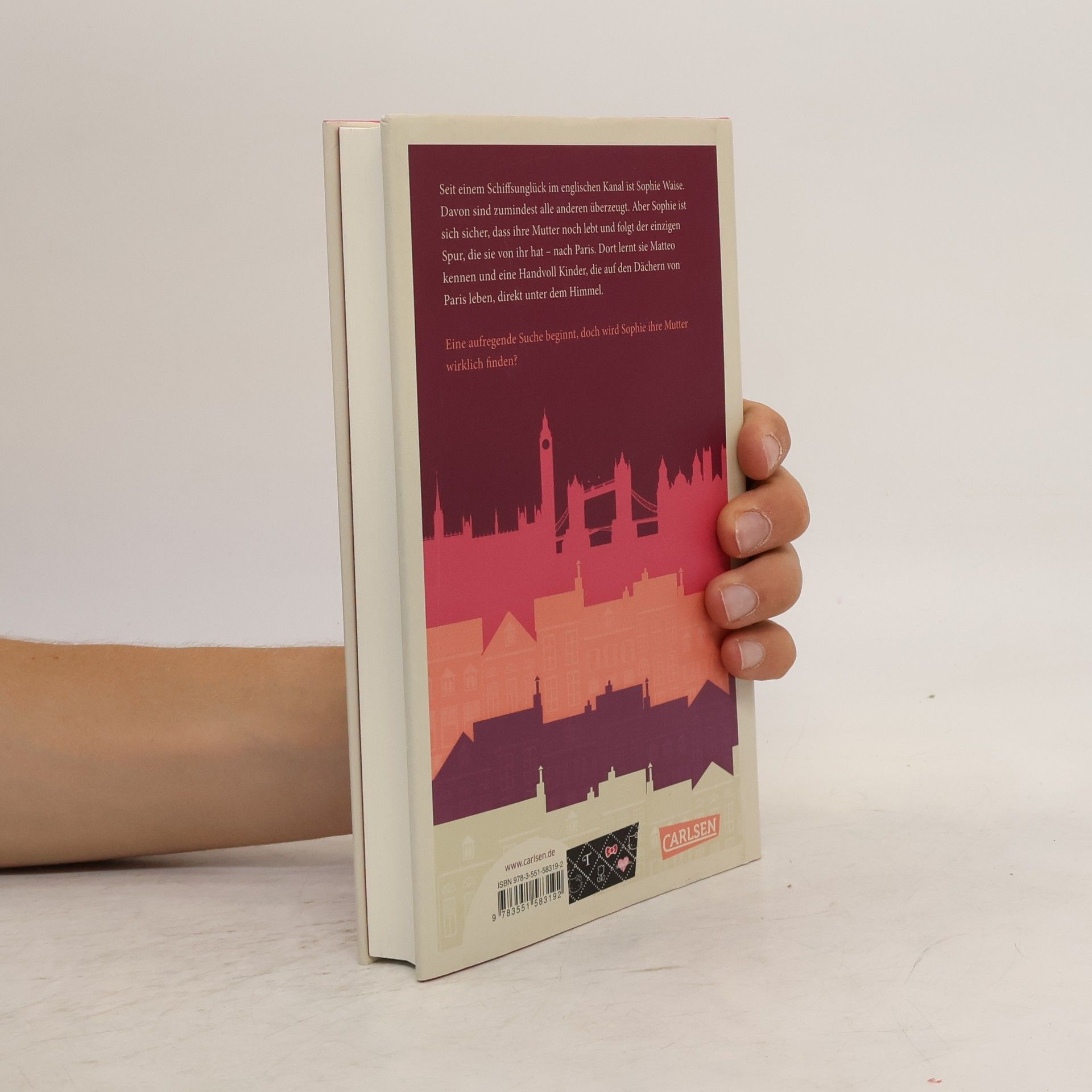Seit einem Schiffsunglück im englischen Kanal ist Sophie Waise. Davon sind zumindest alle anderen überzeugt. Aber Sophie ist sich sicher, dass ihre Mutter noch lebt und folgt der einzigen Spur, die sie von ihr hat – nach Paris. Dort lernt sie Matteo kennen und eine Handvoll Kinder, die aus den unterschiedlichsten Gründen auf den Dächern von Paris leben. Eine aufregende Suche beginnt und ein unvergessliches Abenteuer nimmt seinen Lauf. Doch wird Sophie ihre Mutter auf den Dächern von Paris wirklich finden?