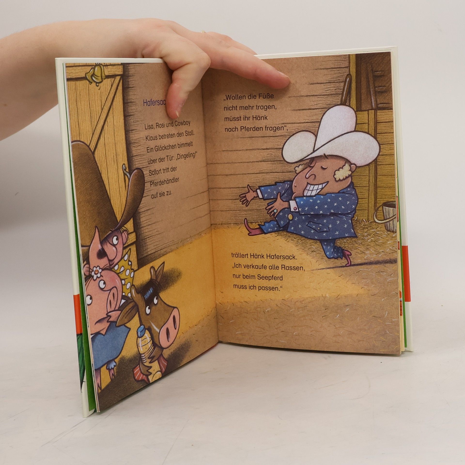 Cowboy Klaus wünscht sich nichts sehnlicher als ein schönes und schnelles Pferd. Also schnappt er sich seine Sparbüchse und macht sich auf den Weg zum Händler Hänk Hafersack. Aber leider reicht das Geld nur für einen Ladenhüter, ein plumpes und hässliches Kamel. Cowboy Klaus ist enttäuscht. Bestimmt werden sich jetzt alle über ihn lustig machen. Aber dann beschließt er, das Beste aus seiner Lage zu machen.