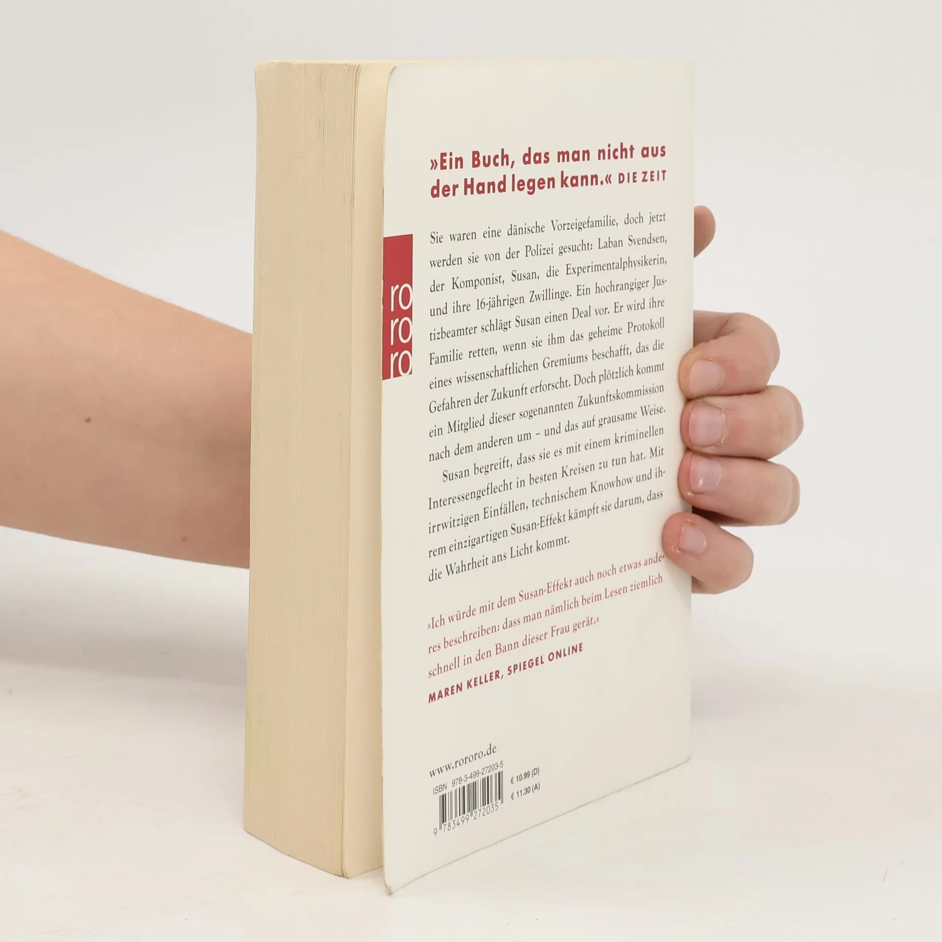 Sie waren eine dänische Vorzeigefamilie, doch jetzt werden sie von der Polizei gesucht: Laban Svendsen, der Komponist, Susan, die Experimentalphysikerin, und ihre 16jährigen Zwillinge. Ein hochrangiger Justizbeamter schlägt Susan einen Deal vor. Er wird ihre Familie retten, wenn sie ihm das geheime Protokoll eines wissenschaftlichen Gremiums beschafft, das die Gefahren der Zukunft erforscht. Doch plötzlich kommt ein Mitglied dieser sogenannten Zukunftskommission nach dem anderen um - und das auf grausame Weise. Susan begreift, dass sie es mit einem kriminellen Interessengeflecht in besten Kreisen zu tun hat. Mit irrwitzigen Einfällen, technischem Knowhow und ihrem einzigartigen Susan-Effekt kämpft sie darum, dass die Wahrheit ans Licht kommt.