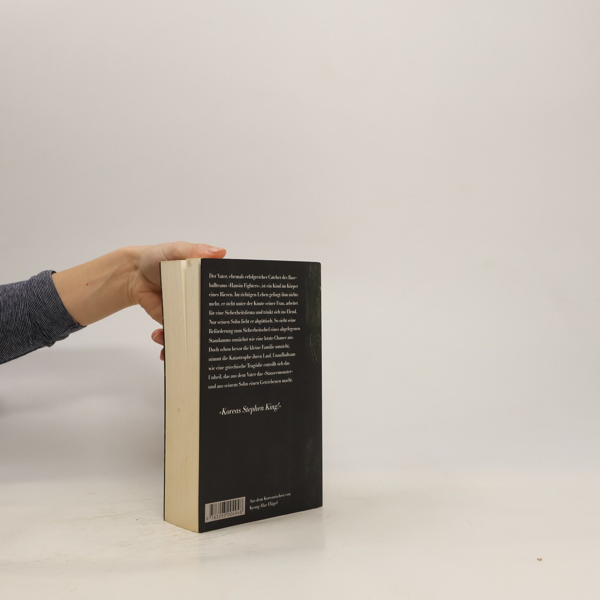 Der Vater, ehemals erfolgreicher Catcher des Baseballteams »Hansin Fighters«, ist ein Kind im Körper eines Riesen. Im richtigen Leben gelingt ihm nichts mehr, er steht unter der Knute seiner Frau, arbeitet für eine Sicherheitsfirma und trinkt sich ins Elend. Nur seinen Sohn liebt er abgöttisch. So sieht seine Beförderung zum Sicherheitschef eines abgelegenen Staudamms zunächst wie eine letzte Chance aus. Doch schon bevor die kleine Familie umzieht, nimmt die Katastrophe ihren Lauf. Unaufhaltsam wie eine griechische Tragödie entrollt sich das Unheil, das aus dem Vater das »Stauseemonster« und aus seinem Sohn einen Getriebenen macht.