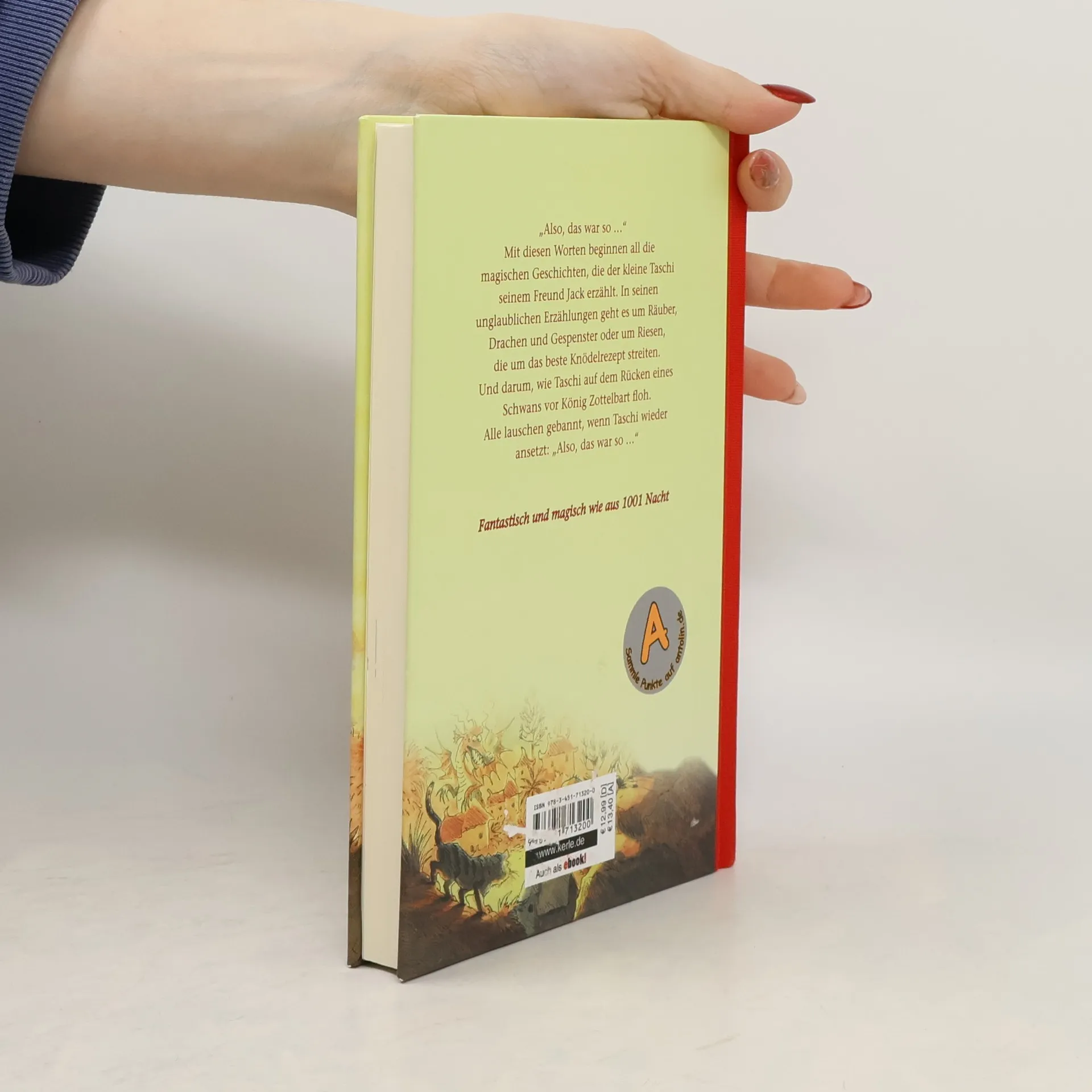 „Also, das war so …“ Mit diesen Worten beginnen die magischen Geschichten, die Taschi seinem Freund Jack erzählt. Taschi kommt aus einem Land, in dem es noch Elfen und Riesen gibt. In seinen Geschichten geht es um Räuber, Drachen und Gespenster oder um Riesen, die um das beste Rezept für Knödel streiten. Und darum, wie Taschi auf dem Rücken eines Schwans vor König Zottelbart floh. Alle lauschen gebannt, wenn Taschi wieder ansetzt: „Also, das war so …“