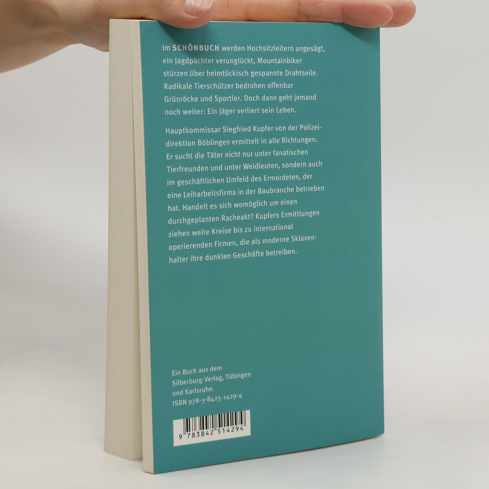Im Schönbuch werden Hochsitzleitern angesägt, ein Jagdpächter verunglückt, Mountainbiker stürzen über heimtückisch gespannte Drahtseile. Es hat den Anschein, dass radikale Naturschützer Jäger und Sportler bedrohen. Dann aber wird ein Jagdpächter ermordet. Die groteske Anordnung seiner Leiche und seines toten Hunds weisen auf einen geplanten Racheakt hin. Hauptkommissar Siegfried Kupfer von der Polizeidirektion Böblingen sucht die Täter nicht unter Jägern oder fanatischen Naturschützern, sondern im geschäftlichen Umfeld des Ermordeten, der eine Leiharbeitsfirma in der Baubranche betrieben hat. Kupfers Ermittlungen ziehen weite Kreise bis zu international operierenden Firmen, die als moderne Sklavenhalter ihre dunklen Geschäfte betreiben.
