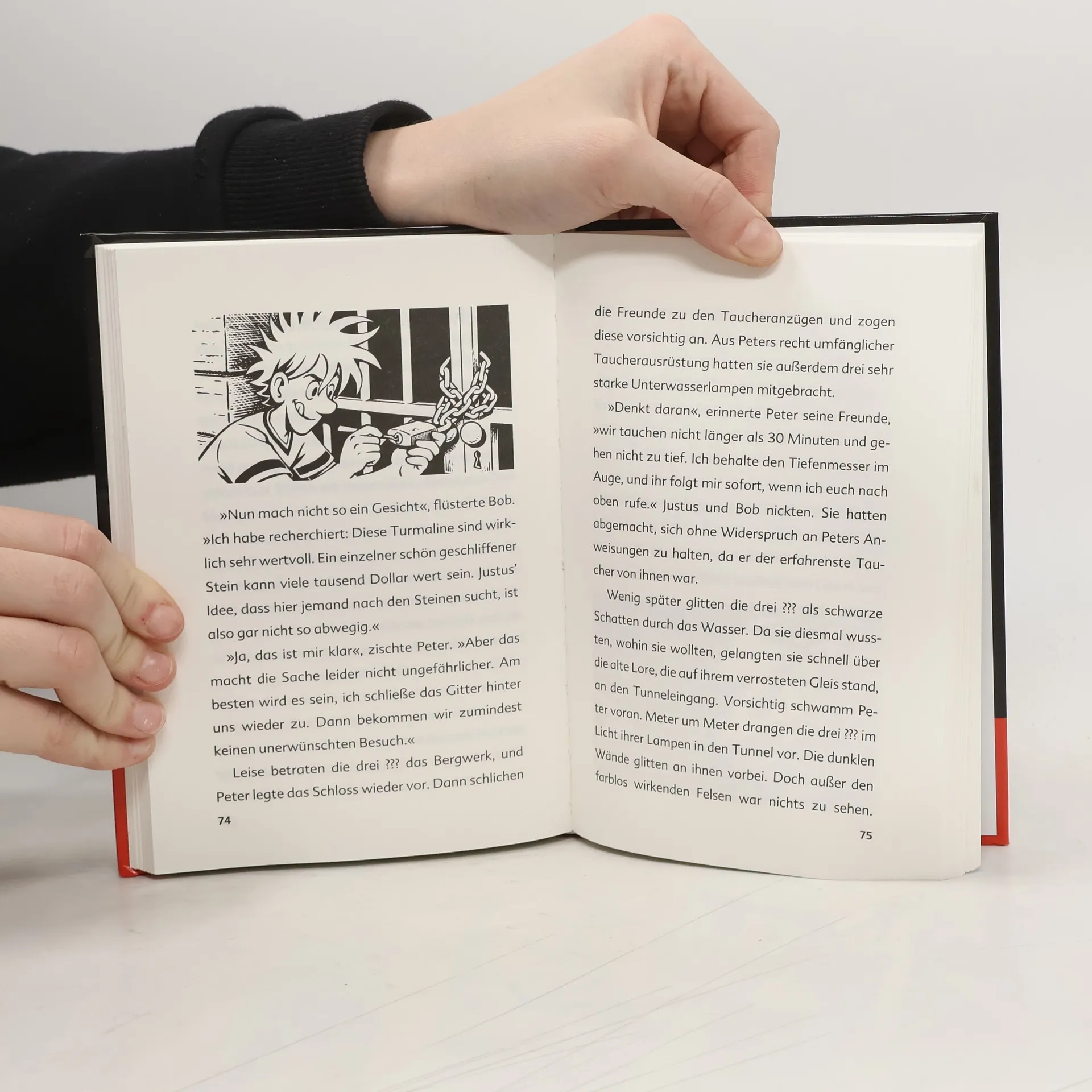 „Die drei ??? Kids“ machen einen Tauchkurs. Ein verdächtiger Teilnehmer verlässt unerlaubt die Gruppe und führt die Detektive in eine Schatzhöhle voller Geheimnisse...