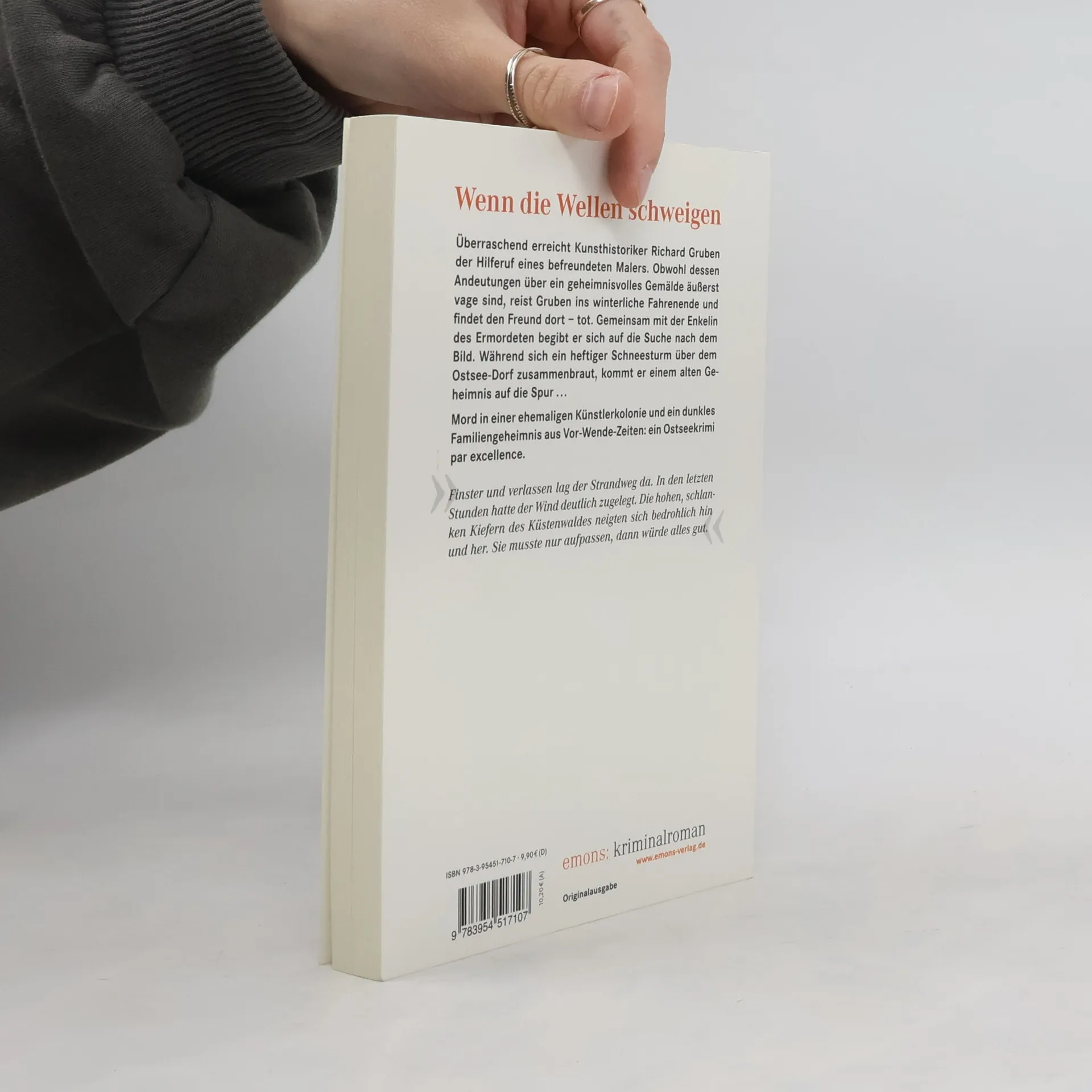 Überraschend erreicht Kunsthistoriker Richard Gruben der Hilferuf eines befreundeten Malers. Obwohl dessen Andeutungen über ein geheimnisvolles Gemälde äußerst vage sind, reist Gruben ins winterliche Fahrenende und fi ndet den Freund dort – tot. Gemeinsam mit der Enkelin des Ermordeten begibt er sich auf die Suche nach dem Bild. Während sich ein heftiger Schneesturm über dem Ostsee-Dorf zusammenbraut, kommt er einem alten Geheimnis auf die Spur . . .