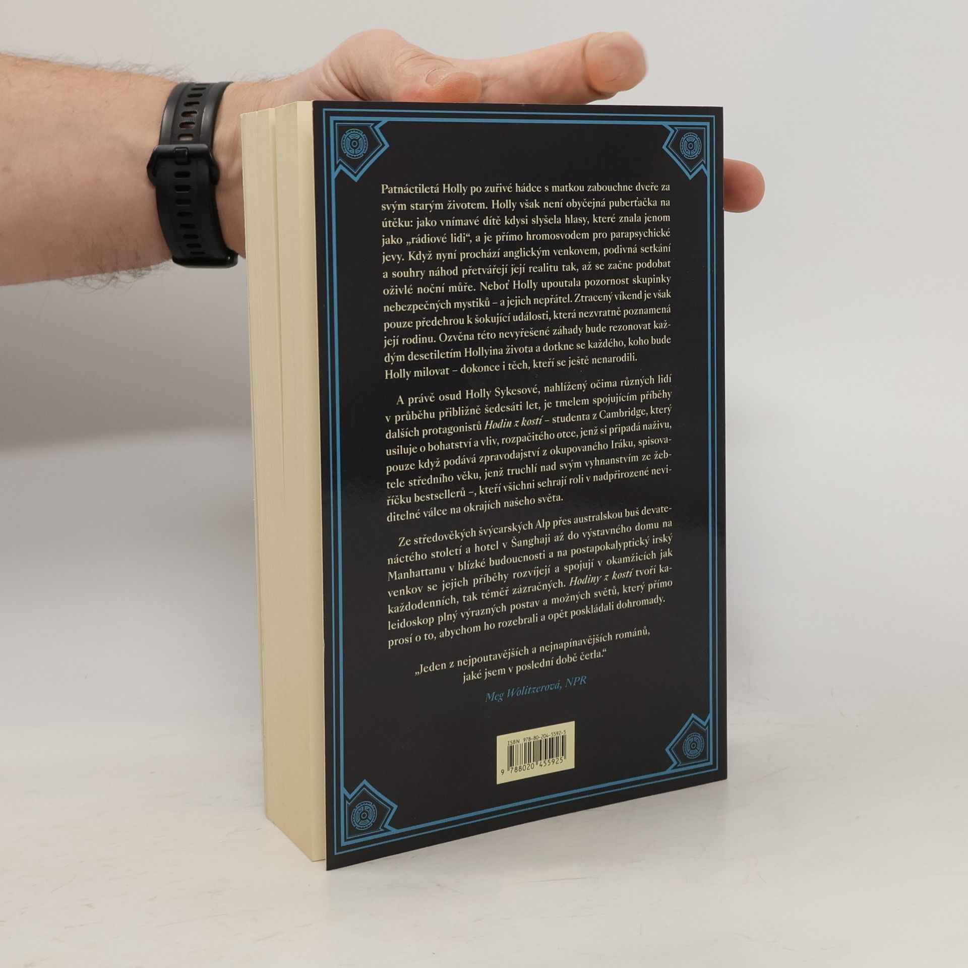 Patnáctiletá Holly po zuřivé hádce s matkou zabouchne dveře za svým starým životem. Když nyní prochází anglickým venkovem, podivná setkání a souhry náhod přetvářejí její realitu tak, až se začne podobat oživlé noční můře. Neboť Holly upoutala pozornost skupinky nebezpečných mystiků – a jejich nepřátel. A právě osud Holly Sykesové je tmelem spojujícím příběhy dalších protagonistů Hodin z kostí – studenta z Cambridge, který usiluje o bohatství a vliv, rozpačitého otce, jenž si připadá naživu, pouze když podává zpravodajství z okupovaného Iráku, spisovatele středního věku, jenž truchlí nad svým vyhnanstvím ze žebříčku bestsellerů –, kteří všichni sehrají roli v nadpřirozené neviditelné válce na okrajích našeho světa. Ze středověkých švýcarských Alp přes australskou buš devatenáctého století a hotel v Šanghaji až do výstavného domu na Manhattanu v blízké budoucnosti a na postapokalyptický irský venkov se jejich příběhy rozvíjejí a spojují v okamžicích jak každodenních, tak téměř zázračných. Hodiny z kostí tvoří kaleidoskop plný výrazných postav a možných světů, který přímo prosí o to, abychom ho rozebrali a opět poskládali dohromady.