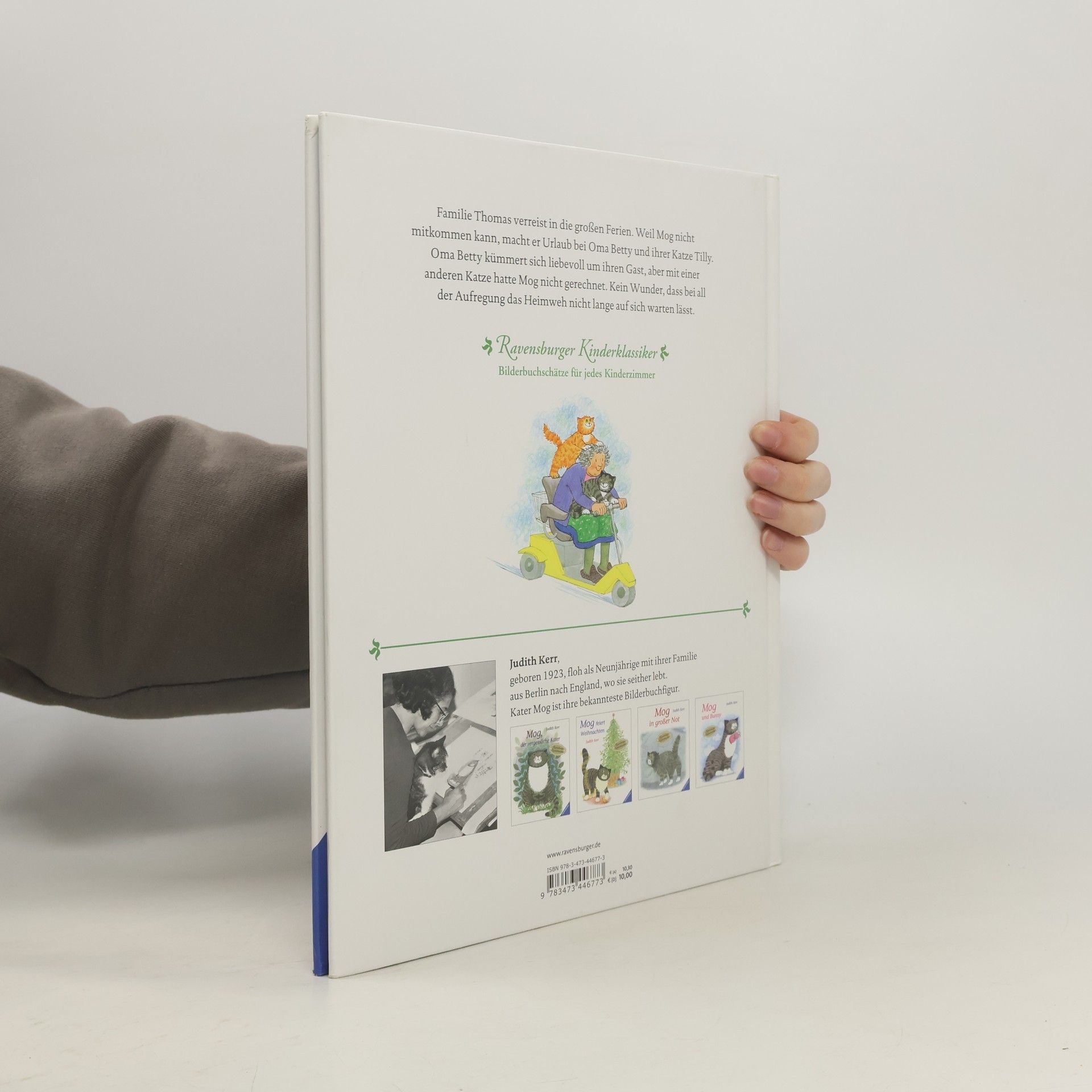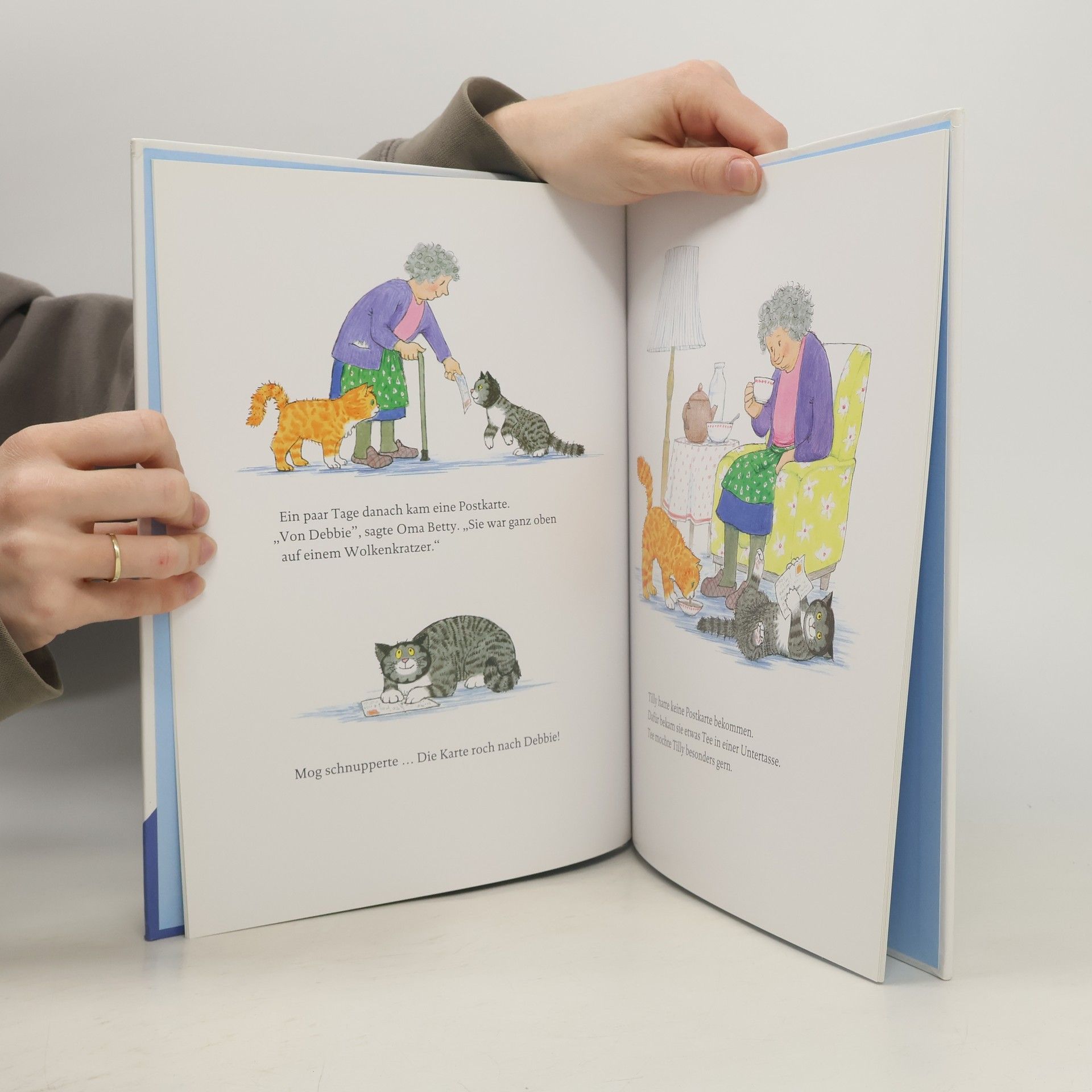 Weil seine Familie nach Amerika fährt, soll Kater Mog die Ferien bei Oma Betty verbringen. Zuerst hat er großes Heimweh und vermisst Debbie ganz fürchterlich. Aber Oma Betty ist sehr nett und bald freundet sich Mog sogar mit ihrer Katze Tilly an. Doch dann passiert dem tollpatschigen Mog ein Missgeschick mit Oma Bettys Lieblingstasse und er läuft Hals über Kopf davon ...