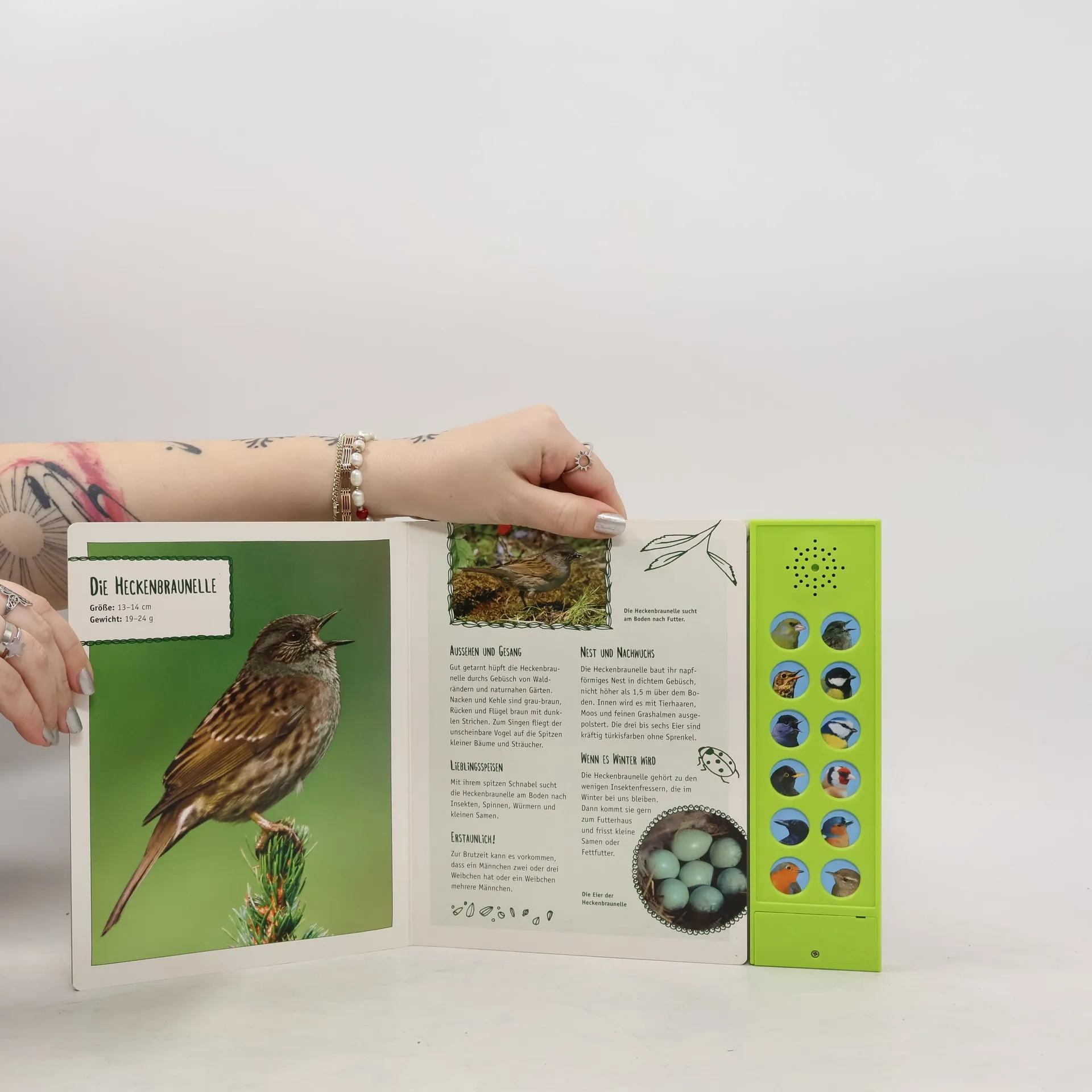 Ob im Baum, auf dem Dach oder in der Hecke: Im Frühling stimmen die Vögel ihr großes Konzert an. Doch welche Stimme gehört welchem Vogel? Mit diesem opulenten Soundbuch kommen kleine und große Vogelfreunde 12 verschiedenen Arten auf die Spur - mit vielen Fotos, spannenden Sachinformationen und den echten Gesängen unserer beliebtesten Gartenvögel.