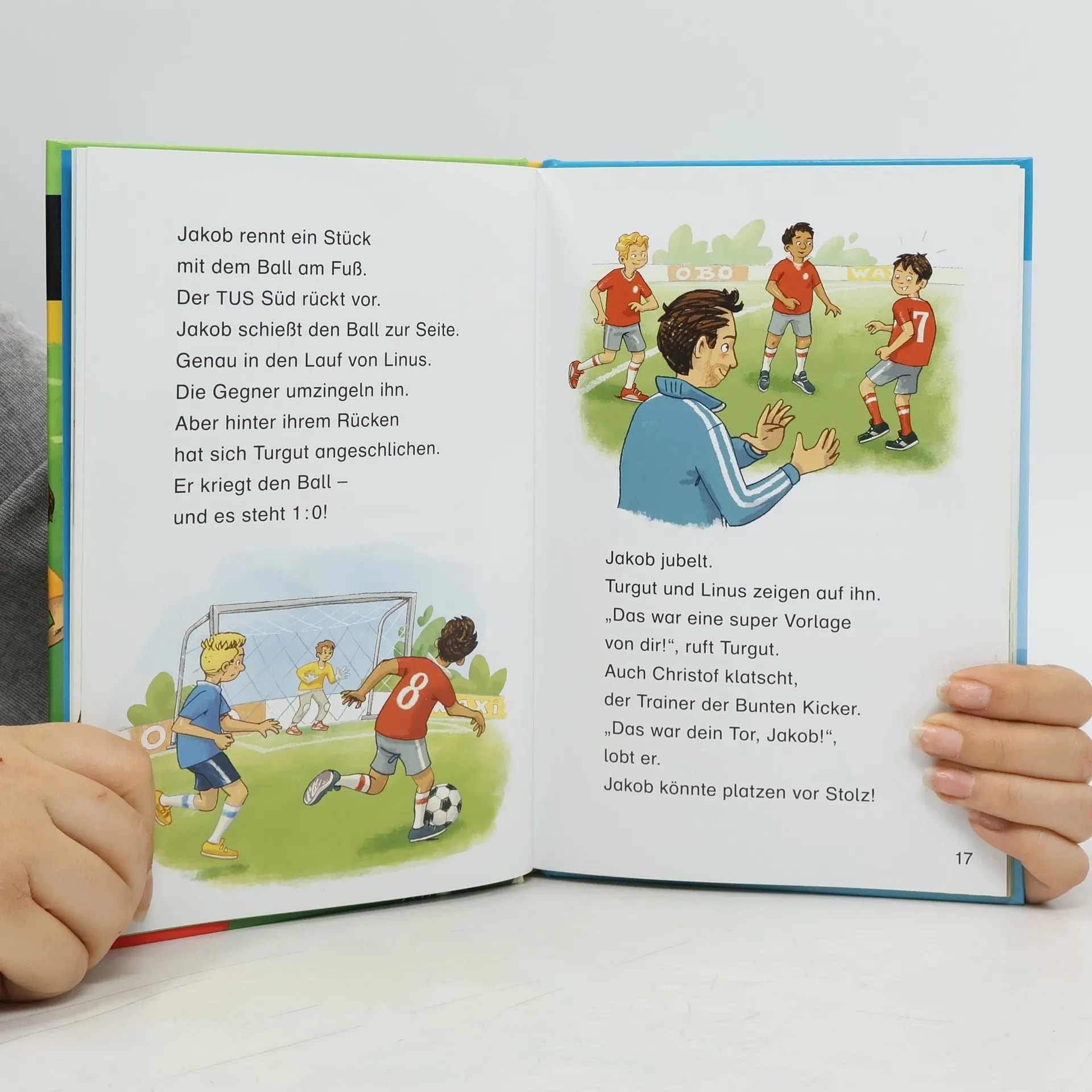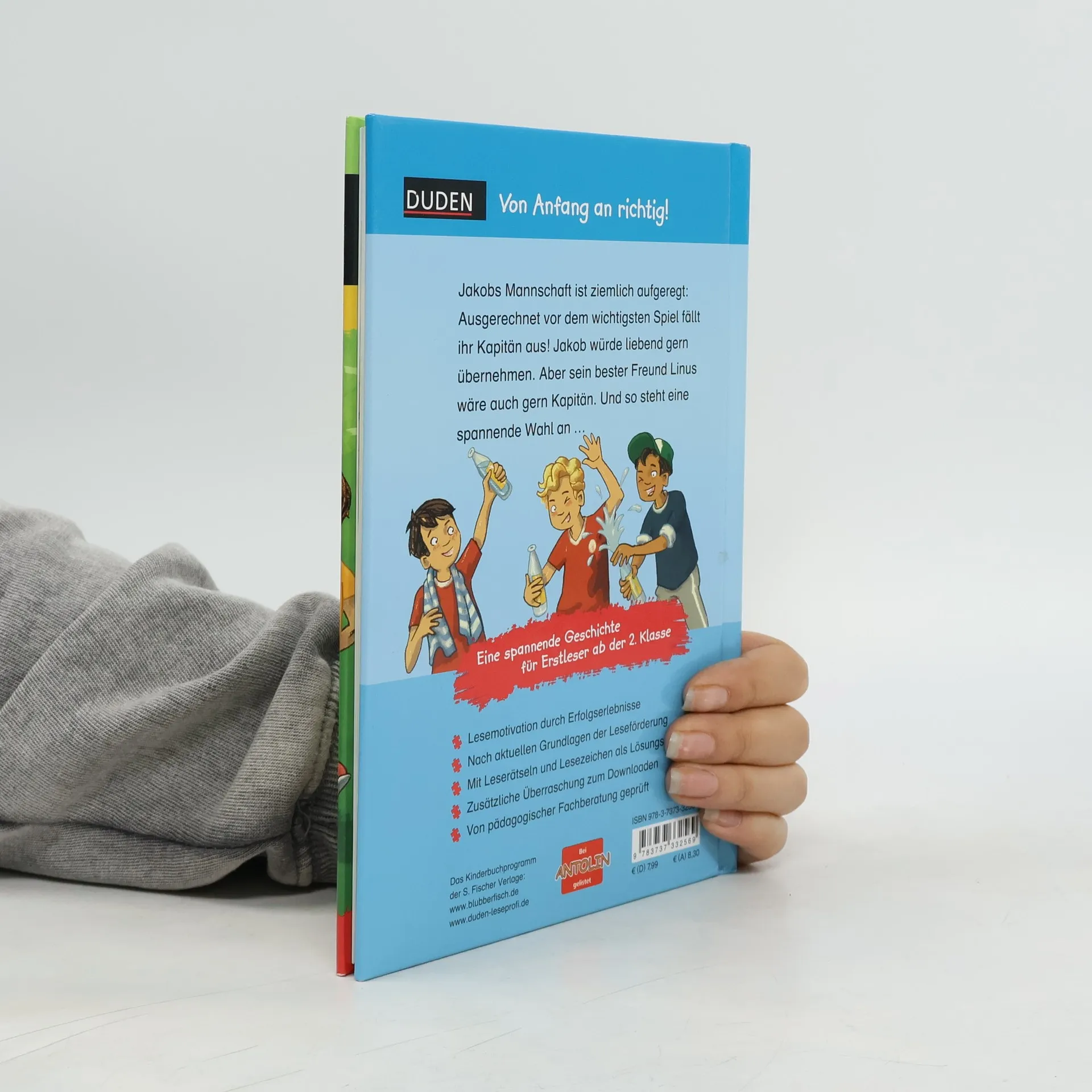 Lesen lernen leicht gemacht: Erstlesebuch zum Thema „Fußball“ für Kinder ab der 2. Klasse Jakobs Mannschaft ist in hellem Aufruhr: Ausgerechnet vor dem wichtigsten Fußballspiel fällt ihr Kapitän aus! Jakob würde liebend gern übernehmen. Aber sein bester Freund Linus wäre auch gern Kapitän. Und so steht eine spannende Wahl an … So geht zeitgemäße Leseförderung: Diese spannende und toll illustrierte Geschichte aus der Erstlesereihe „Leseprofi“ von FISCHER Duden Kinderbuch sorgt garantiert für Lesespaß. Der Text ist genau auf die Bedürfnisse der Jungen und Mädchen zugeschnitten. So erleben sie schnell motivierende Erfolge. Kleine, abwechslungsreiche Übungen zum Textverständnis begleiten beim Lesen. Ein interaktives Lesezeichen dient als Lösungsschlüssel. Zudem wartet auf jeden Leser eine kostenlose Online-Überraschung zum Download. Alle Titel der Reihe werden bei Antolin gelistet. Duden – von Anfang an richtig!