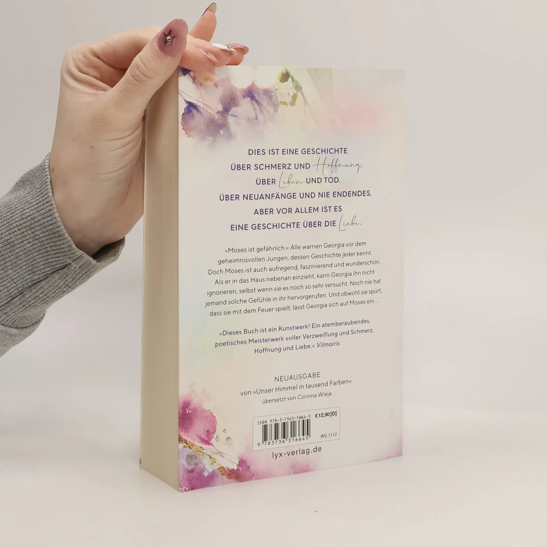 Dies ist eine Geschichte über Schmerz und Hoffnung. Über Leben und Tod. Über Neuanfänge und nie Endendes. Aber vor allem ist es eine Geschichte über die Liebe. "Moses ist gefährlich." Alle warnen Georgia vor dem geheimnisvollen Jungen, dessen Geschichte jeder kennt. Doch Moses ist auch aufregend, faszinierend und wunderschön. Als er in das Haus nebenan einzieht, kann Georgia ihn nicht ignorieren, selbst wenn sie es noch so sehr versucht. Noch nie hat jemand solche Gefühle in ihr hervorgerufen. Und obwohl sie spürt, dass sie mit dem Feuer spielt, lässt Georgia sich auf Moses ein ... "Dieses Buch ist ein Kunstwerk! Ein atemberaubendes, poetisches Meisterwerk voller Verzweiflung und Schmerz, Hoffnung und Liebe." VILMAIRIS Neuausgabe von UNSER HIMMEL IN TAUSEND FARBEN