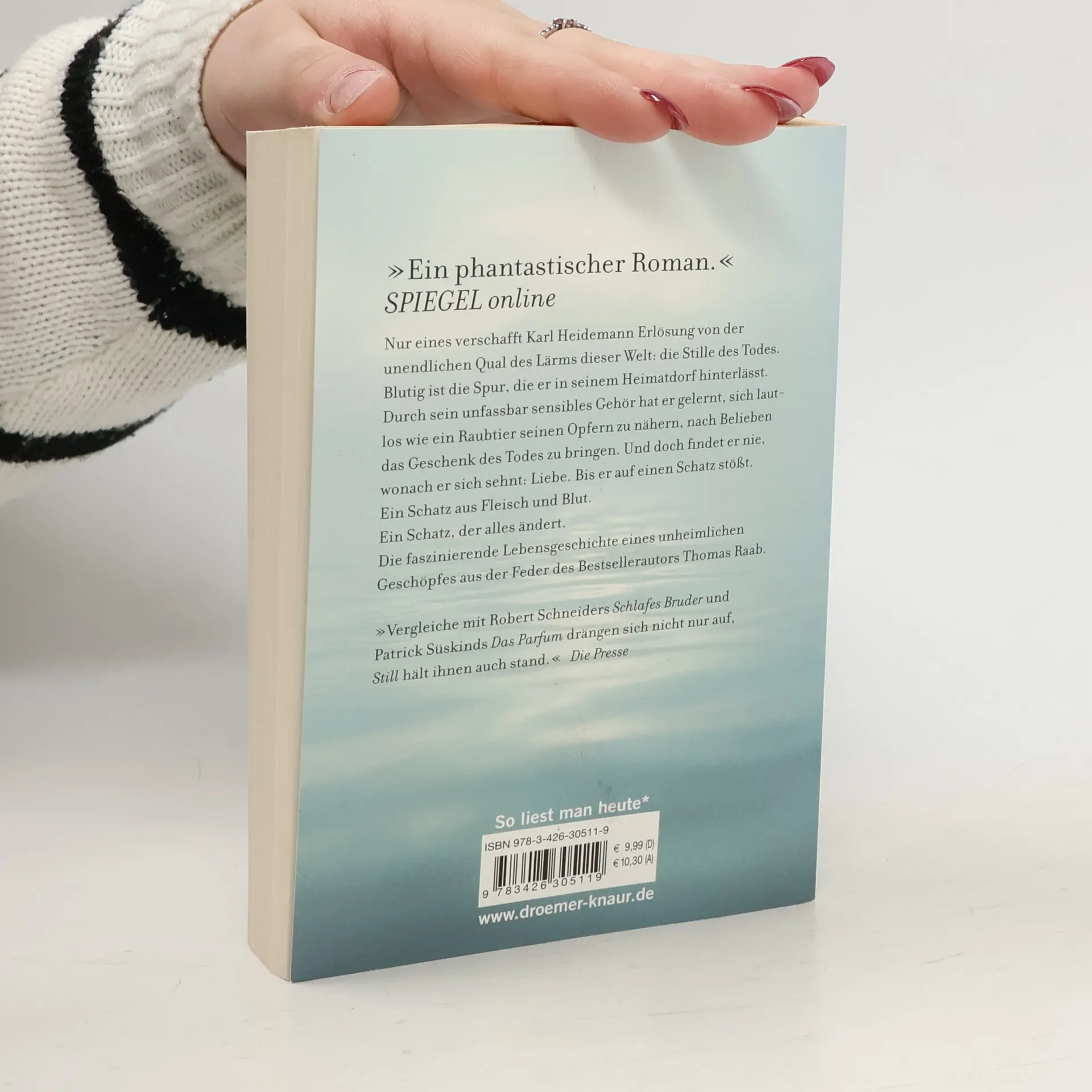 „Ein phantastischer Roman.“ SPIEGEL online Nur eines verschafft Karl Heidemann Erlösung von der unendlichen Qual des Lärms dieser Welt: die Stille des Todes. Blutig ist die Spur, die er in seinem Heimatdorf hinterlässt. Durch sein unfassbar sensibles Gehör hat er gelernt, sich lautlos wie ein Raubtier seinen Opfern zu nähern, nach Belieben das Geschenk des Todes zu bringen. Und doch findet er nie, wonach er sich sehnt: Liebe. Bis er auf einen Schatz stößt. Ein Schatz aus Fleisch und Blut. Ein Schatz, der alles ändert. Die faszinierende Lebensgeschichte eines unheimlichen Geschöpfes aus der Feder des Bestsellerautors Thomas Raab. „Vergleiche mit Robert Schneider Schlafes Bruder und Patrick Süskinds Das Parfum drängen sich nicht nur auf, Still hält ihnen auch stand.“ Die Presse