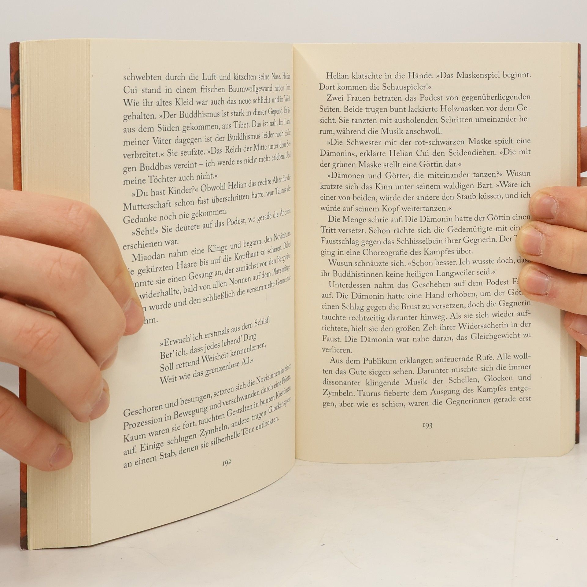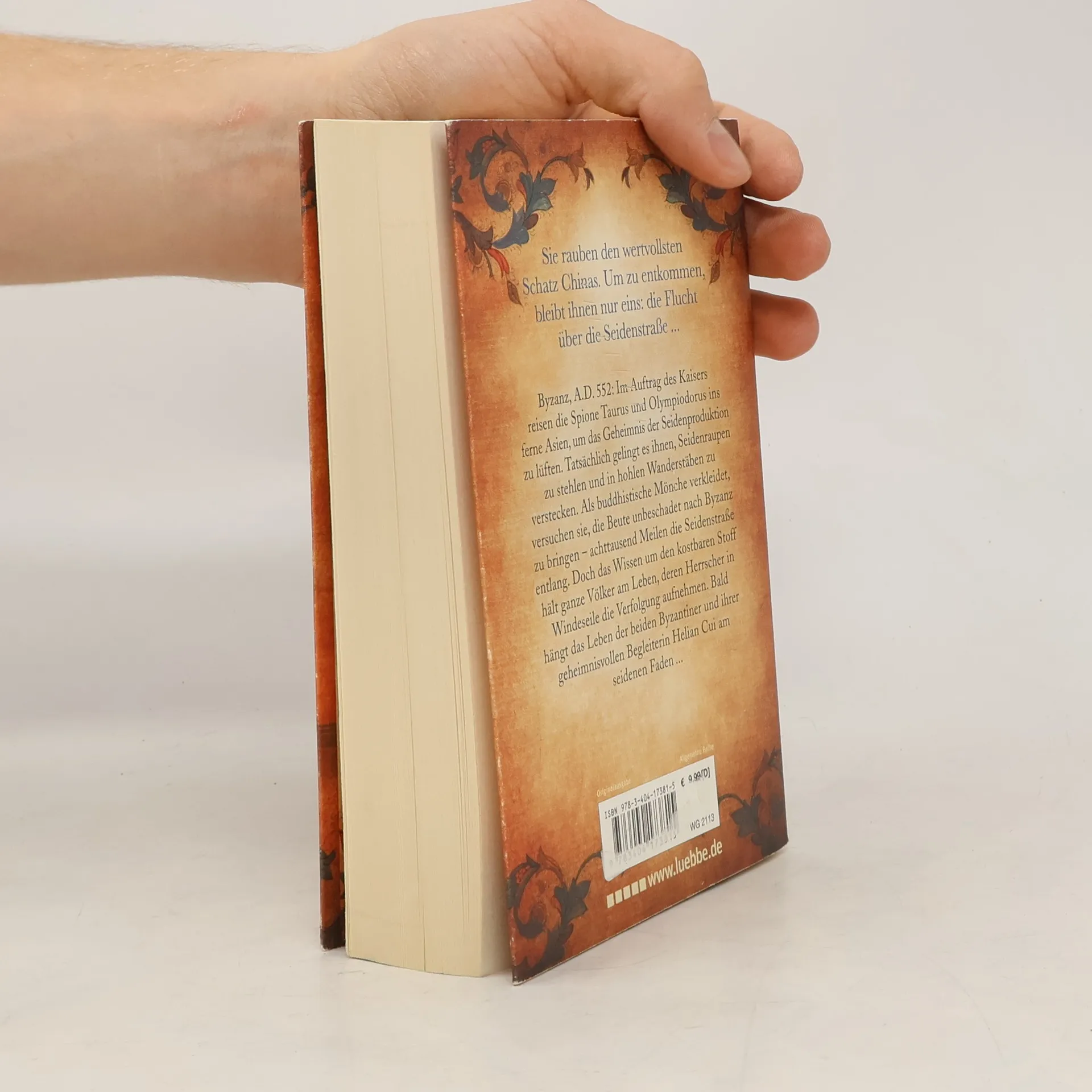 Sie rauben den wertvollsten Schatz Chinas. Um zu entkommen, bleibt ihnen nur eins: die Flucht über die Seidenstraße ... Byzanz, A. D. 552: Im Auftrag des Kaisers reisen die Spione Taurus und Olympiodorus ins ferne Asien, um das Geheimnis der Seidenproduktion zu lüften. Tatsächlich gelingt es ihnen, Seidenraupen zu stehlen und in hohlen Wanderstäben zu verstecken. Als buddhistische Mönche verkleidet, versuchen sie, die Beute unbeschadet nach Byzanz zu bringen - achttausend Meilen die Seidenstraße entlang. Doch das Wissen um den kostbaren Stoff hält ganze Völker am Leben, deren Herrscher in Windeseile die Verfolgung aufnehmen. Bald hängt das Leben der beiden Byzantiner und ihrer geheimnisvollen Begleiterin Helian Cui am seidenen Faden ...