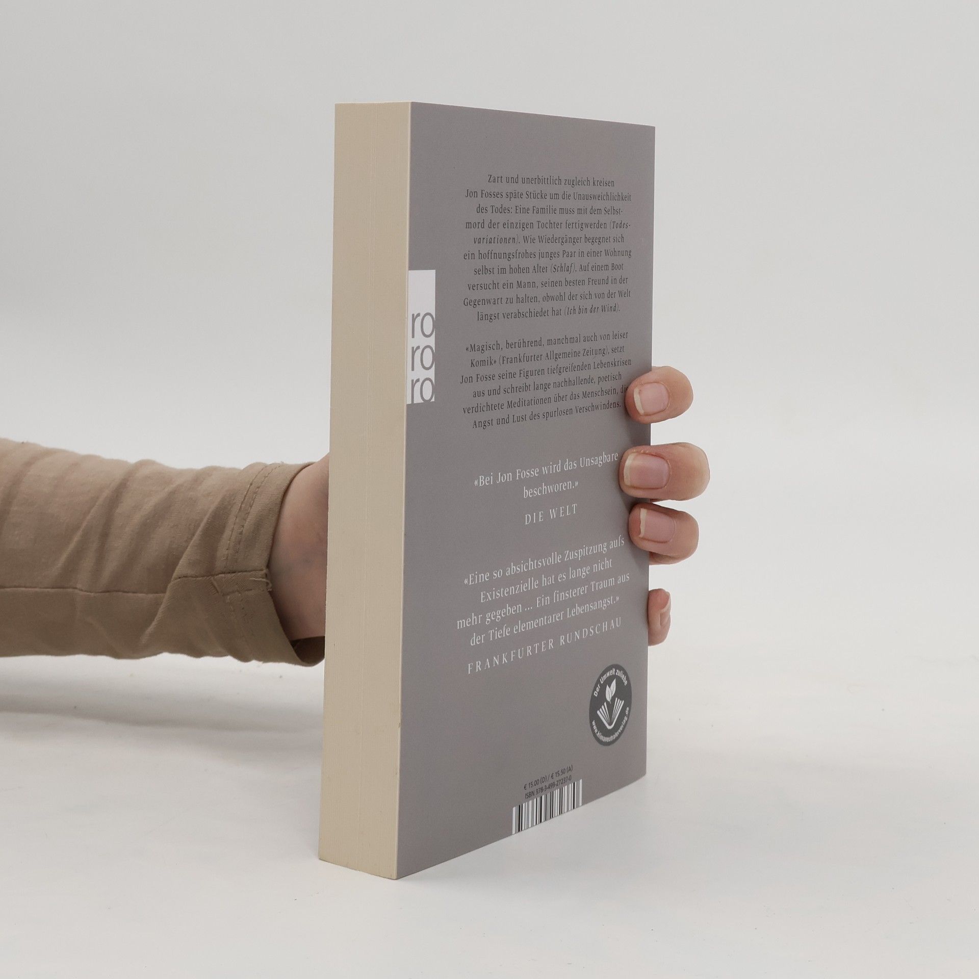 Zart und unerbittlich zugleich kreisen Jon Fosses Stücke um die Unausweichlichkeit des Todes: Eine Familie muss mit dem Selbstmord der einzigen Tochter fertigwerden (Todesvariationen). Wie Wiedergänger begegnet sich ein hoffnungsfrohes junges Paar in einer Wohnung selbst im hohen Alter (Schlaf). Auf einem Boot versucht ein Mann seinen besten Freund in der Gegenwart zu halten, obwohl der sich von der Welt längst verabschiedet hat (Ich bin der Wind). «Magisch, berührend, manchmal auch von leiser Komik» (Frankfurter Allgemeine Zeitung), setzt Jon Fosse seine Figuren tiefgreifenden Lebenskrisen aus und schreibt lange nachhallende, poetisch verdichtete Meditationen über das Menschsein, die Angst und Lust des spurlosen Verschwindens. «Bei Jon Fosse wird das Unsagbare beschworen.» (Die Welt) «Eine so absichtsvolle Zuspitzung aufs Existenzielle hat es lange nicht mehr gegeben … Ein finsterer Traum aus der Tiefe elementarer Lebensangst.» (Frankfurter Rundschau)