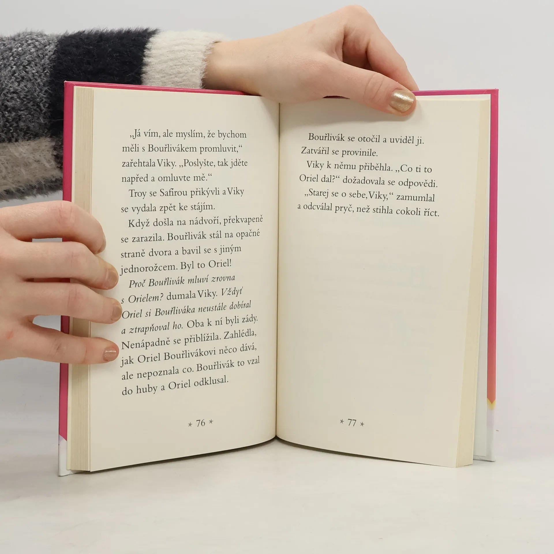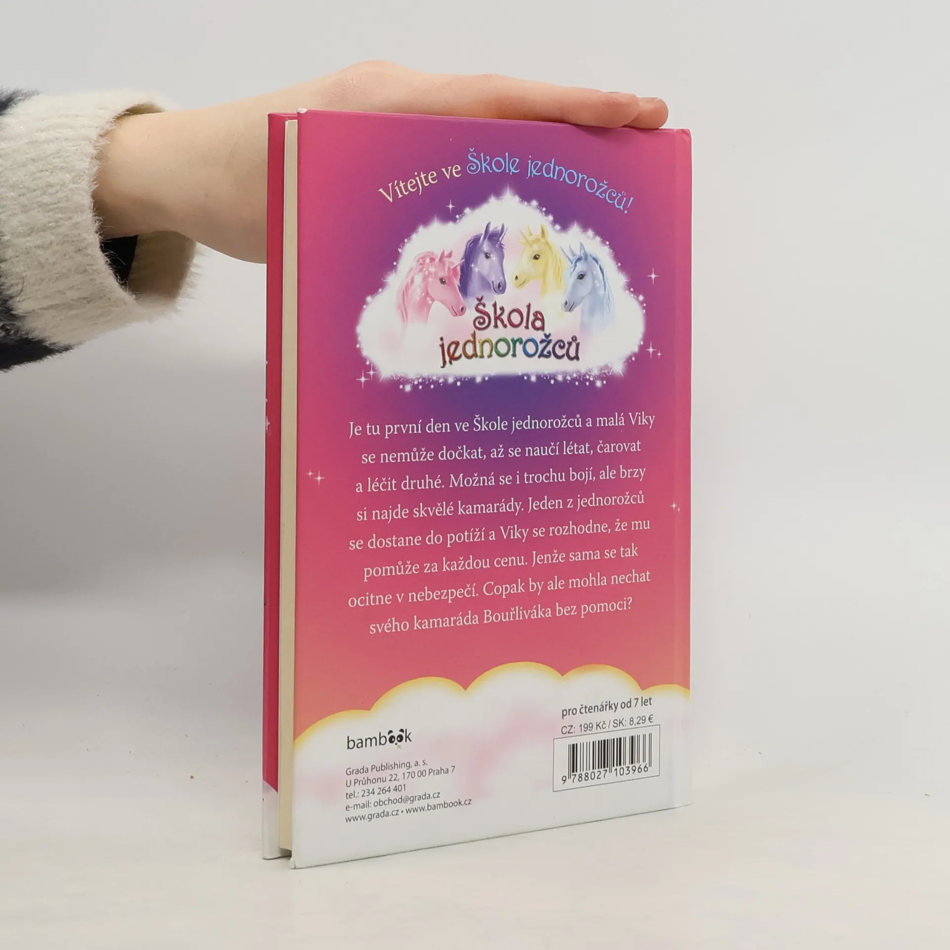 Je tu první den ve Škole jednorožců a malá Viky se nemůže dočkat, až se naučí létat, čarovat a léčit druhé. Možná se i trochu bojí, ale brzy si najde skvělé kamarády. Jeden z jednorožců se dostane do potíží a Viky se rozhodne, že mu pomůže za každou cenu. Jenže sama se tak ocitne v nebezpečí. Copak by ale mohla nechat svého kamaráda Bouřliváka bez pomoci?