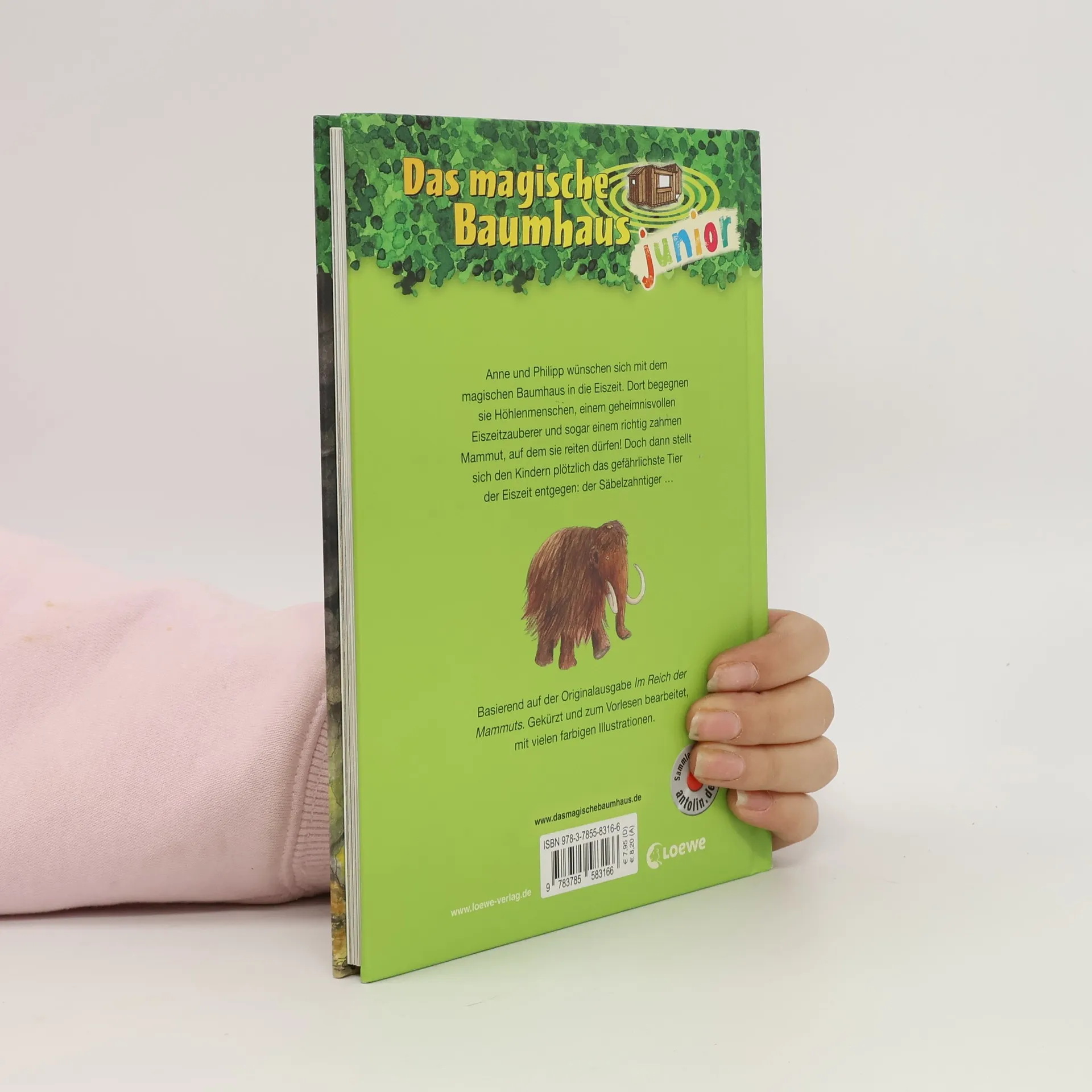 Das Buch ist bei deiner Buchhandlung vor Ort und bei vielen Online-Buchshops erhältlich! + Bücher, die Kinder gerne lesen wollen + Beliebte Themen: Abenteuer, Tiere und fremde Länder + Hochwertiges Hardcover + Mit vielen Illustrationen + Bereits über 10 Millionen verkaufte Bücher der Baumhaus-Reihe + Ausgewogenes Text-Bild-Verhältnis + Große Schrift + Kurze Kapitel + Anne und Philipp wünschen sich mit dem magischen Baumhaus in die Eiszeit . Dort begegnen sie Höhlenmenschen , einem geheimnisvollen Eiszeitzauberer und sogar einem richtig zahmen Mammut , auf dem sie reiten dürfen! Doch dann stellt sich den Kindern plötzlich das gefährlichste Tier der Eiszeit entgegen: der Säbelzahntiger ... Basierend auf der Originalausgabe Das magische Baumhaus – „ Im Reich der Mammuts “. Gekürzt und zum Vorlesen bearbeitet, mit vielen farbigen Illustrationen. Die beliebte Kinderbuch-Reihe von Bestsellerautorin Mary Pope Osborne zum Vorlesen und ersten Selberlesen. Die Geschwister Anne und Philipp reisen mit dem magischen Baumhaus durch die Zeit, entdecken ferne Länder und erleben spannende Abenteuer. Mit vielen bunten Bildern, besonders für Kinder ab 6 Jahren geeignet.