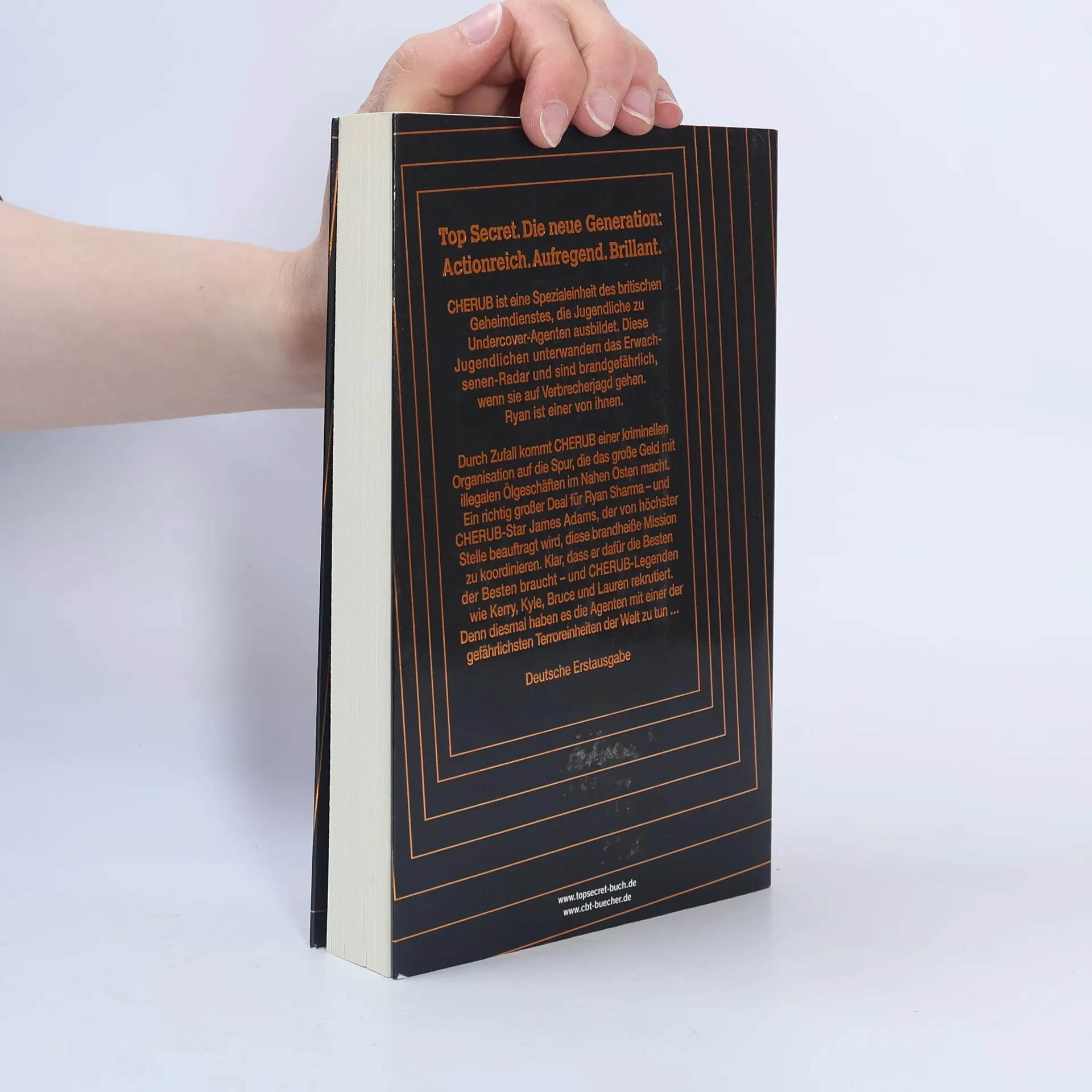 Undercover gegen einen schier übermächtigen Gegner Durch Zufall kommt Cherub einer kriminellen Organisation auf die Spur, die das große Geld mit illegalen Ölgeschäften im Nahen Osten macht und dabei buchstäblich über Leichen geht. Ein richtig großer Deal für Ryan Sharma – und Cherub-Star James Adams, der von höchster politischer Stelle beauftragt wird, diese brandheiße Mission zu koordinieren. Klar, dass er dafür die Besten der Besten braucht – und Cherub-Legenden wie Kerry, Kyle, Bruce, Lauren & Co. rekrutiert. Denn diesmal haben es die Agenten nicht nur mit einem skrupellosen Kriminellen zu tun, sondern mit einer der gefährlichsten Terroreinheiten der Welt …