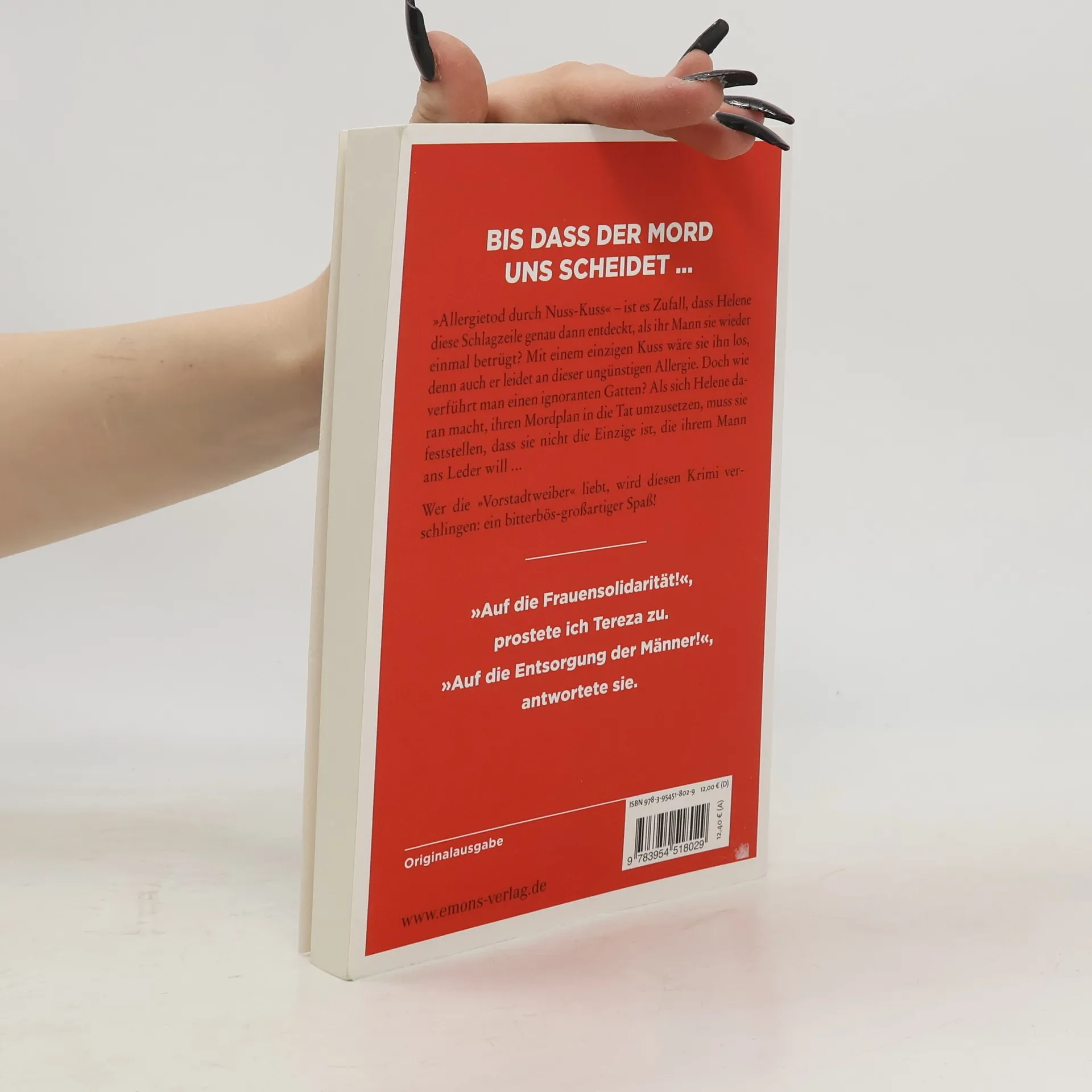»Allergietod durch Nuss-Kuss« – ist es Zufall, dass Helene diese Schlagzeile genau dann entdeckt, als ihr Mann sie wieder einmal betrügt? Mit einem einzigen Kuss wäre sie ihn los, denn auch er leidet an dieser ungünstigen Allergie. Doch wie verführt man einen ignoranten Gatten? Als sich Helene daran macht, ihren Mordplan in die Tat umzusetzen, muss sie feststellen, dass sie nicht die Einzige ist, die ihrem Mann ans Leder will . . .