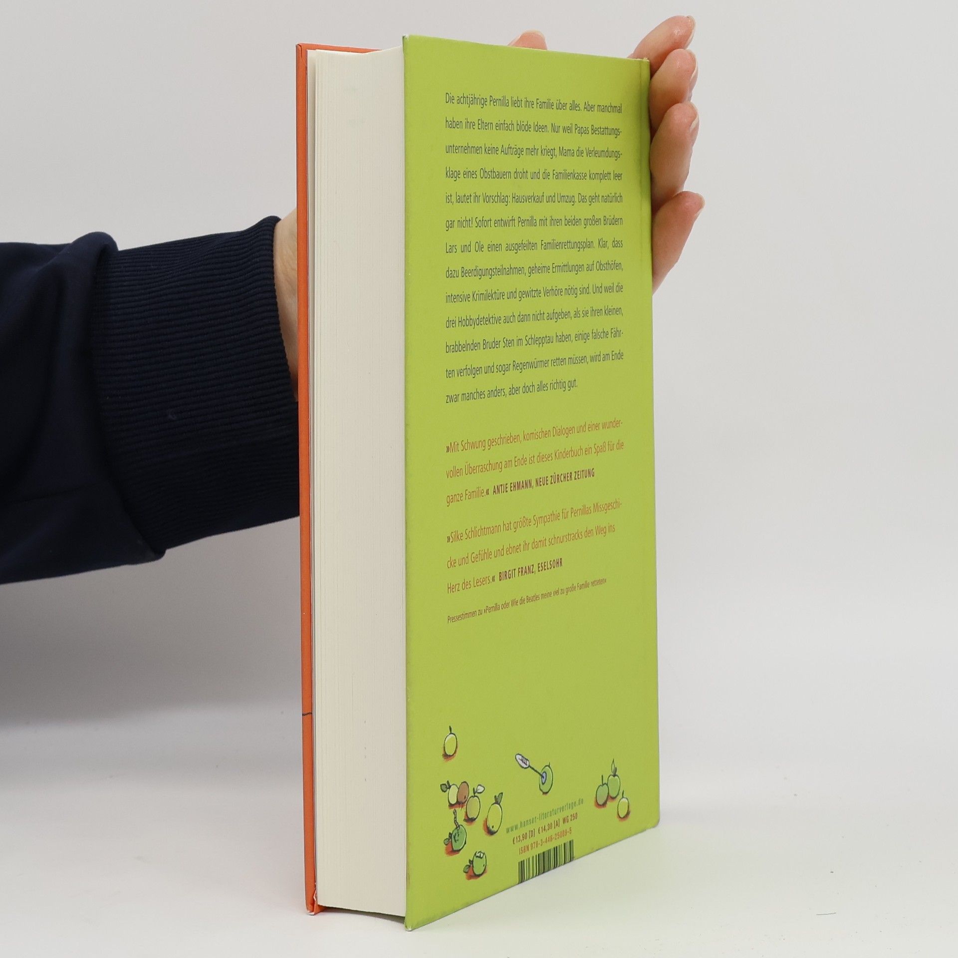 Pernilla ist alarmiert, als sie erfährt, dass Papas Bestattungsunternehmen keine Aufträge mehr kriegt und Mama von einem Bauern verklagt wird, der glaubt, der Obstbaummörder in einem ihrer Krimis zu sein. Sicher steht die Familie jetzt vor dem finanziellen Ruin, sozialer Abstieg inklusive! Sofort startet Pernilla mit ihren Brüdern eine Rettungsaktion. Dass dazu Detektivarbeit auf Obsthöfen, Beerdigungsteilnahmen und gewitzte Verhöre nötig sind, macht die Sache spannend. Dass sie auch ihren kleinen Bruder Sten im Schlepptau haben, falsche Fährten verfolgen und Regenwürmer retten, sorgt für den nötigen Humor. Und am Ende zeigt sich, wie gut es ist, dass den Geschwistern nie die Ideen ausgehen.