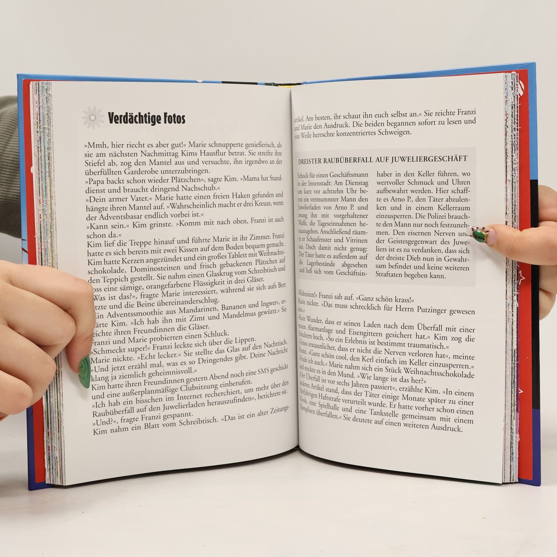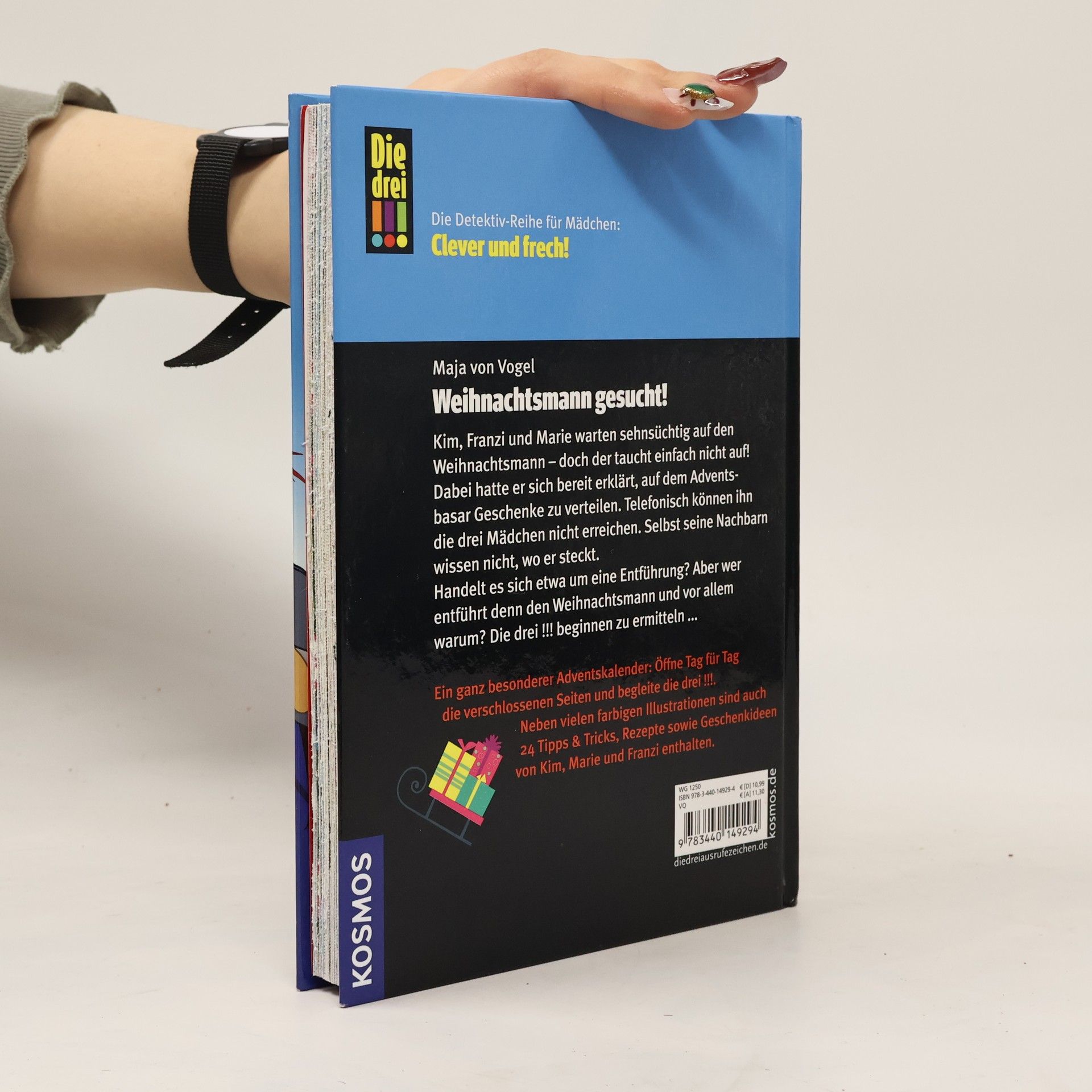 Ein ganz besonderer Adventskalender: Öffne Tag für Tag die verschlossenen Seiten und begleite Die drei !!! durch den Advent. Neben den 24 verschlossenen Kapiteln sind Rätsel, Basteltipps, Backrezepte und festliche Ideen von Kim, Marie und Franzi enthalten. Kim, Franzi und Marie sind Die drei !!!. Mutig und clever ermitteln die drei Freundinnen und sind jedem Fall gewachsen. Beim Adventsbasar freuen sich alle auf den Auftritt des Weihnachtsmanns. Doch der nette ältere Herr taucht nicht auf und bleibt auch danach spurlos verschwunden. Können ihn Die drei !!! rechtzeitig finden und somit den Adventsbasar retten?