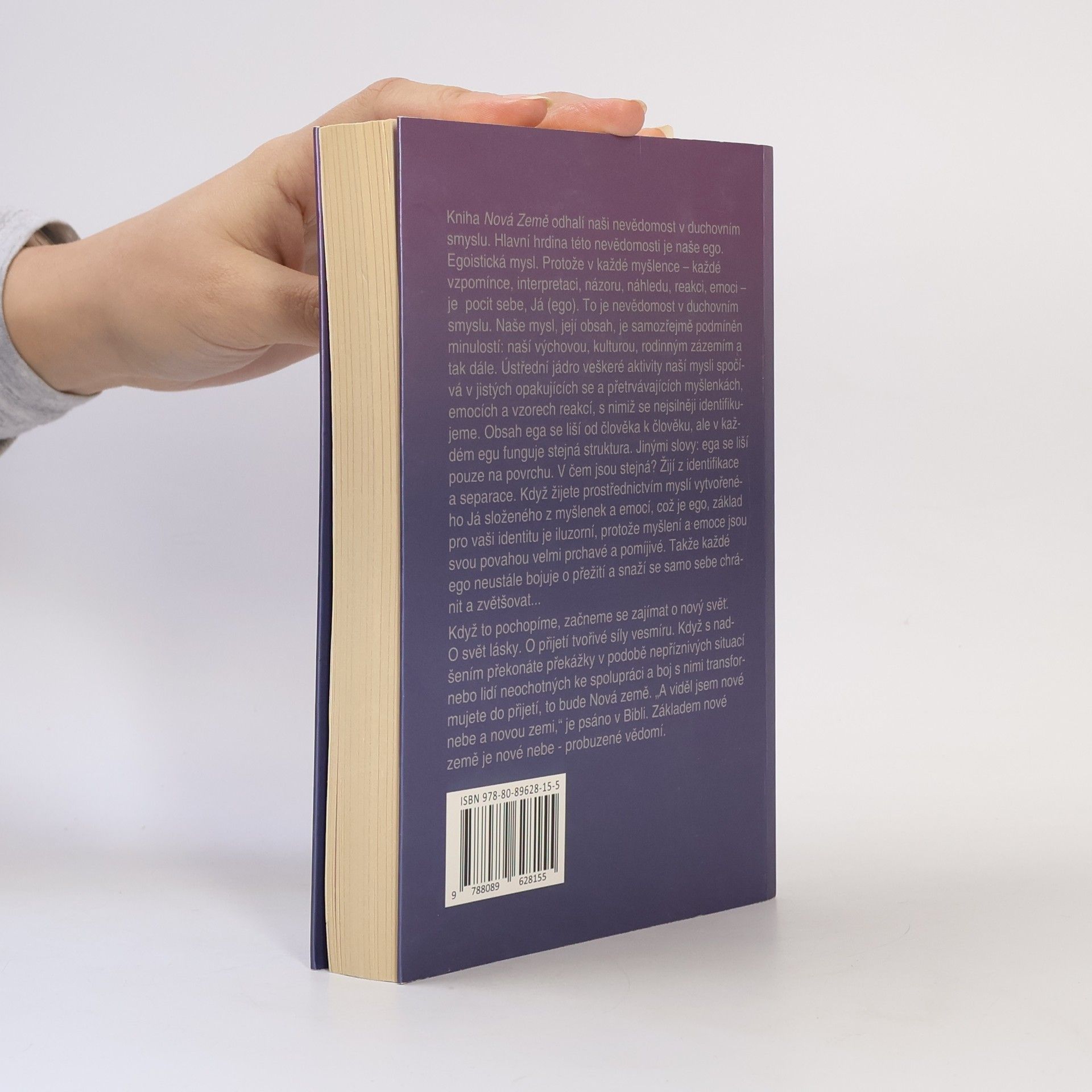 Kniha Nová Země odhalí naši nevědomost v duchovním smyslu. Hlavní hrdina této nevědomosti je naše ego. Egoistická mysl. Protože v každé myšlence – každé vzpomínce, interpretaci, názoru, náhledu, reakci, emoci – je pocit sebe, Já (ego). To je nevědomost v duchovním smyslu. Naše mysl, její obsah, je samozřejmě podmíněn minulostí: naší výchovou, kulturou, rodinným zázemím, a tak dále. Ústřední jádro veškeré aktivity naší mysli spočívá v jistých opakujících se a přetrvávajících myšlenkách, emocích a vzorech reakcí, s nimiž se nejsilněji identifikujeme. Obsah ega se liší od člověka k člověku, ale v každém egu funguje stejná struktura. Jinými slovy: ega se liší pouze na povrchu. V čem jsou stejná? Žijí z identifikace a separace. Když žijete prostřednictvím myslí vytvořeného Já složeného z myšlenek a emocí, což je ego, základ pro vaši identitu je iluzorní, protože myšlení a emoce jsou svou povahou velmi prchavé a pomíjivé. Takže každé ego neustále bojuje o přežití a snaží se samo sebe chránit a zvětšovat... Když to pochopíme, začneme se zajímat o nový svět. O svět lásky, o přijetí tvořivé síly vesmíru. Když s nadšením překonáte překážky v podobě nepříznivých situací, nebo lidí neochotných ke spolupráci a boj s nimi transformujete do přijetí, to bude Nová země. „A viděl jsem nové nebe a novou zemi,“ je psáno v Bibli. Základem nové země je nové nebe - probuzené vědomí.