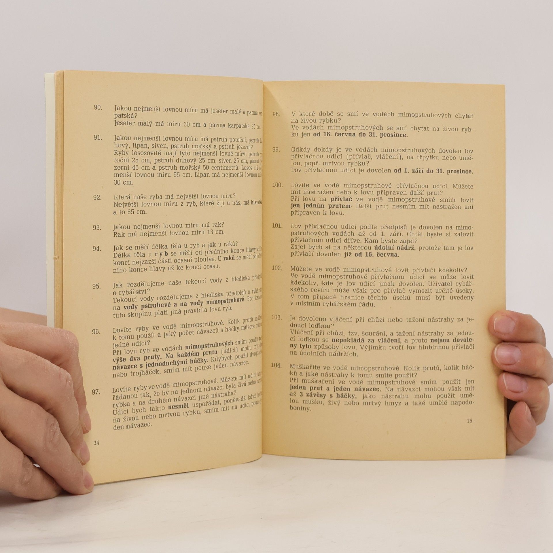 Formou otázek a odpovědí poskytuje příručka minimum odborných znalostí, ať již jde o otázky organizační, poučení o anatomii, morfologii a fyziologii ryby, životě našich vod, rybářském nářadí, technice rybolovu apod.