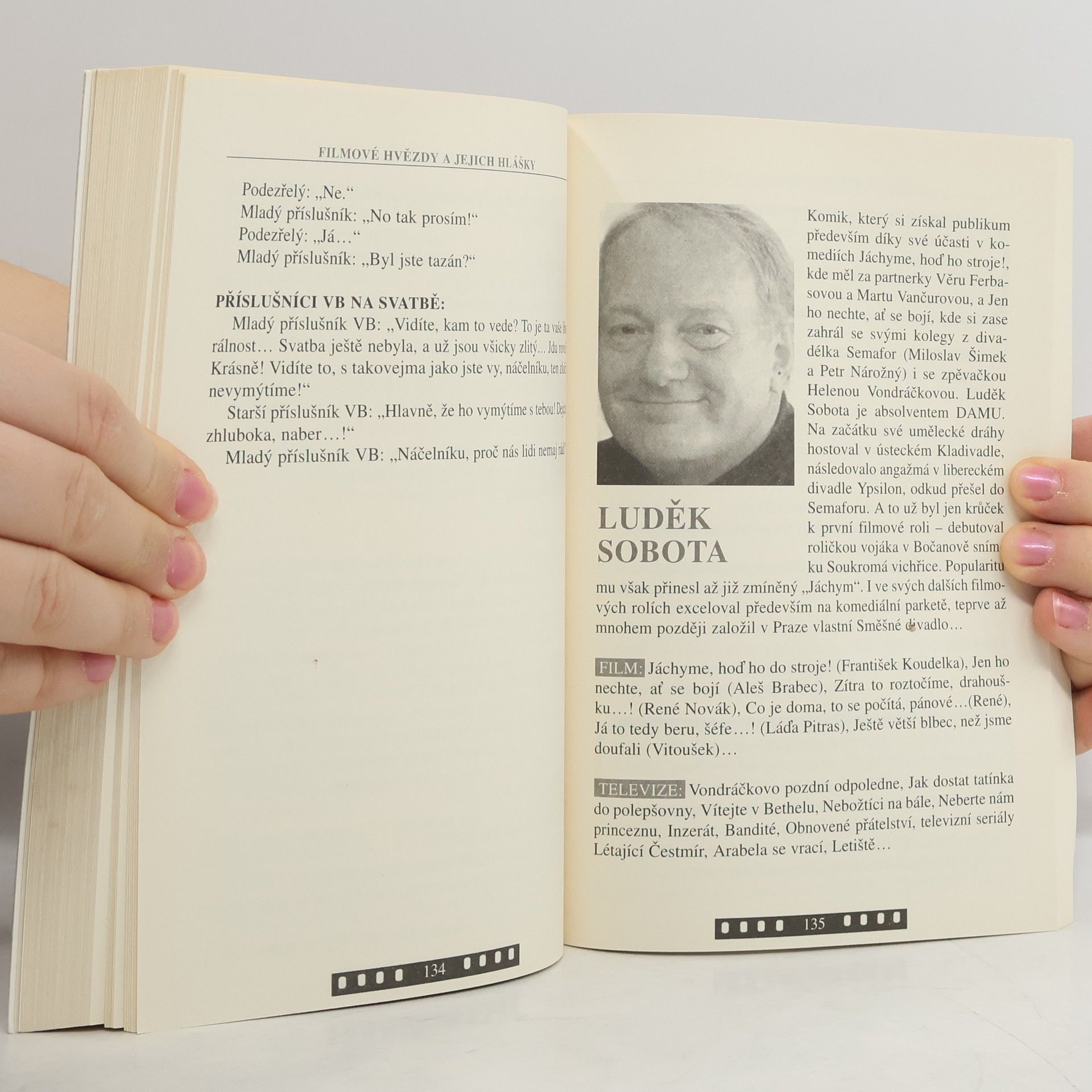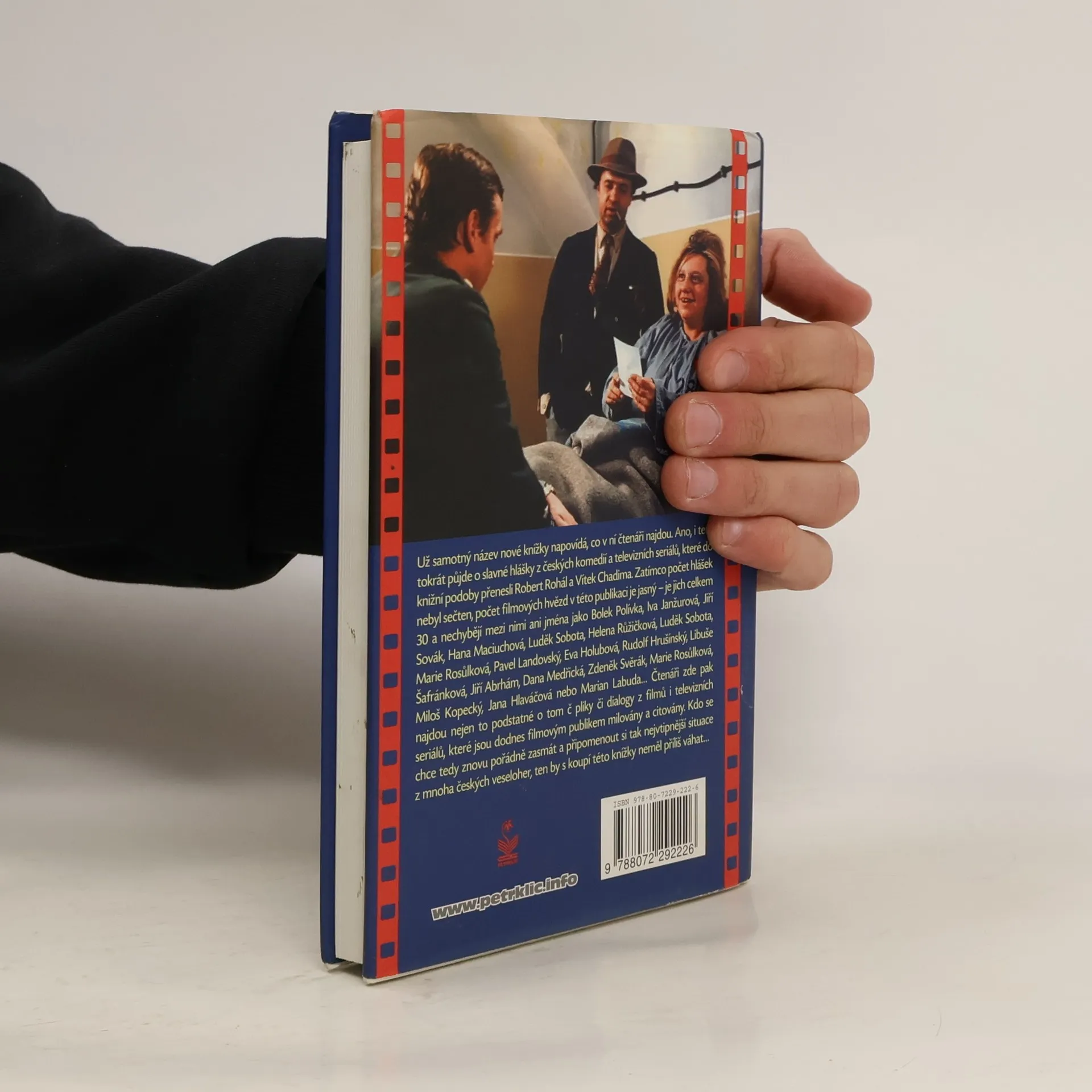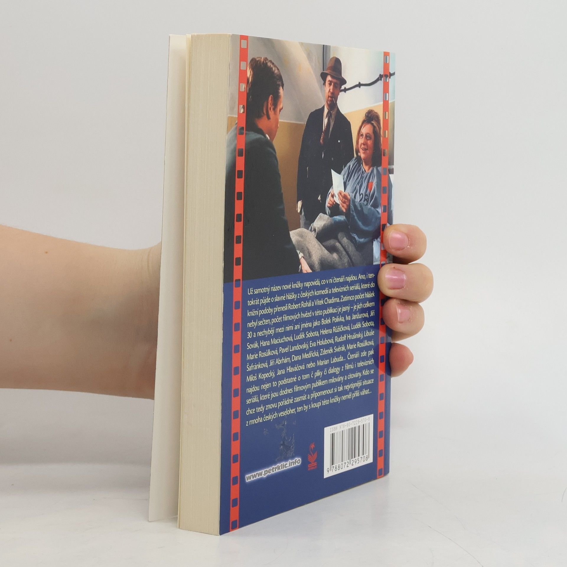 Už samotný název nové knížky napovídá, co v ní čtenáři najdou. Ano, i tentokrát půjde o slavné hlášky z českých komedií a televizních seriálů, které do knižní podoby přenesli Robert Rohál a Vítek Chadima. Zatímco počet hlášek nebyl sečten, počet filmových hvězd v této publikaci je jasný – je jich celkem 31 a nechybějí mezi nimi ani jména jako Bolek Polvíka, Iva Janžurová, Jiří Sovák, Hana Maciuchová, Luděk Sobota, Helena Růžičková, Luděk Sobota, Marie Rosůlková, Pavel Landovský, Eva Holubová, Rudolf Hrušínský, Libuše Šafránková, Jiří Abrhám, Dana Medřická, Zdeněk Svěrák, Marie Rosůlková, Miloš Kopecký, Jana Hlaváčová nebo Marian Labuda… Čtenáři zde pak najdou nejen to podstatné o tom či onom herci či herečce, ale především nepřijdou o „jejich“ nejvtipnější hlášky, repliky či dialogy z filmů i televizních seriálů, které jsou dodnes filmovým publikem milovány a citovány. Kdo si chce tedy znovu pořádně zasmát a připomenout si tak nejvtipnější situace z mnoha českých veseloher, ten by s koupí této knížky neměl příliš váhat.