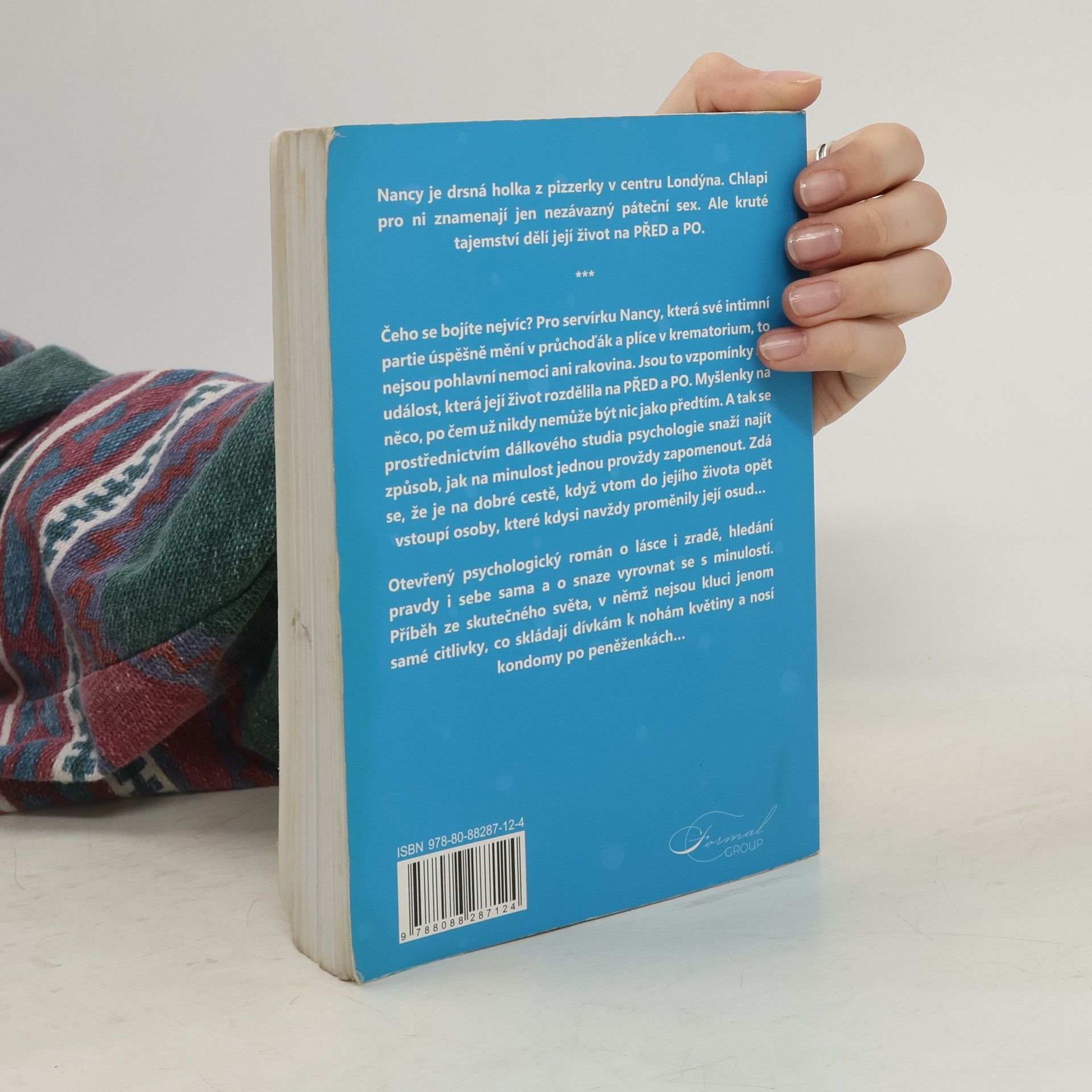 Nancy je drsná holka z pizzerky v centru Londýna. Chlapi pro ni znamenají jen nezávazný páteční sex. Ale kruté tajemství dělí její život na PŘED a PO. Čeho se bojíte nejvíc? Pro servírku Nancy, která své intimní partie úspěšně mění v průchoďák a plíce v krematorium, to nejsou pohlavní nemoci ani rakovina. Jsou to vzpomínky na událost, která její život rozdělila na PŘED a PO. Myšlenky na něco, po čem už nikdy nemůže být nic jako předtím. A tak se prostřednictvím dálkového studia psychologie snaží najít způsob, jak na minulost jednou provždy zapomenout. Zdá se, že je na dobré cestě, když vtom do jejího života opět vstoupí osoby, které kdysi navždy proměnily její osud… Otevřený psychologický román o lásce i zradě, hledání pravdy i sebe sama a o snaze vyrovnat se s minulostí. Příběh ze skutečného světa, v němž nejsou kluci jenom samé citlivky, co skládají dívkám k nohám květiny a nosí kondomy po peněženkách…