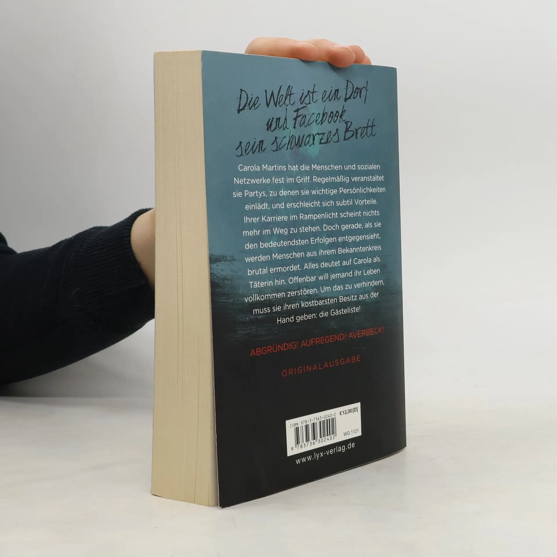 Die Welt ist ein Dorf und Facebook sein schwarzes Brett. Carola Martins hat die Menschen und sozialen Netzwerke fest im Griff. Regelmäßig veranstaltet sie Partys, zu denen sie wichtige Persönlichkeiten einlädt, und erschleicht sich subtil Vorteile. Ihrer Karriere im Rampenlicht scheint nichts mehr im Weg zu stehen. Doch gerade, als sie den bedeutendsten Erfolgen entgegensieht, werden Menschen aus ihrem Bekanntenkreis brutal ermordet. Alles deutet auf Carola als Täterin hin. Offenbar will jemand ihr Leben vollkommen zerstören. Um das zu verhindern, muss sie ihren kostbarsten Besitz aus der Hand geben: die Gästeliste!