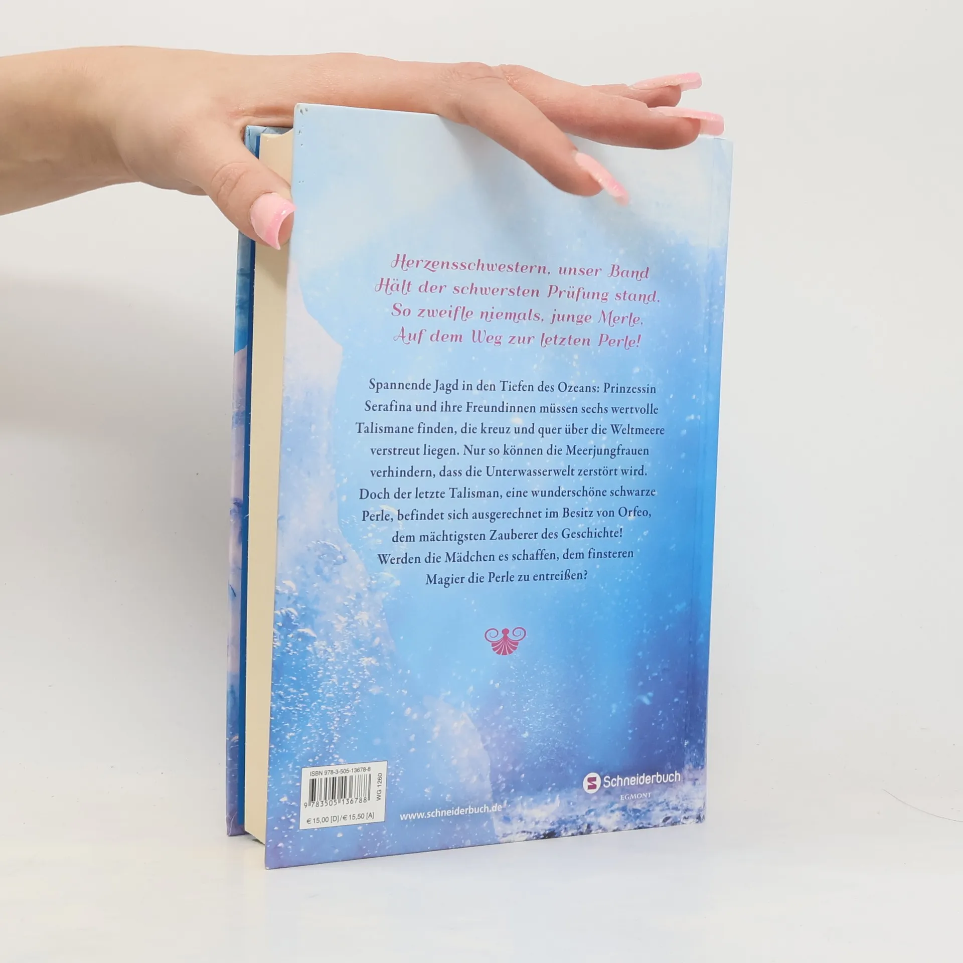 Für Prinzessin Serafina und ihre Freundinnen steht alles auf dem Spiel: Die Mädchen müssen sechs wertvolle Talismane finden, die quer über alle Weltmeere verstreut liegen. Nur so können die Meerjungfrauen verhindern, dass die Unterwasserwelt von einem Ungeheuer aus uralten Zeiten zerstört wird. Doch die Suche nach dem letzten Talisman erweist sich als lebensgefährlich: Die wunderschöne schwarze Perle befindet sich nämlich ausgerechnet im Besitz von Orfeo, dem mächtigsten Zauberer der Geschichte. Werden die Mädchen es schaffen, dem finsteren Magier die Perle zu entreißen und die Unterwasserwelt zu retten?
