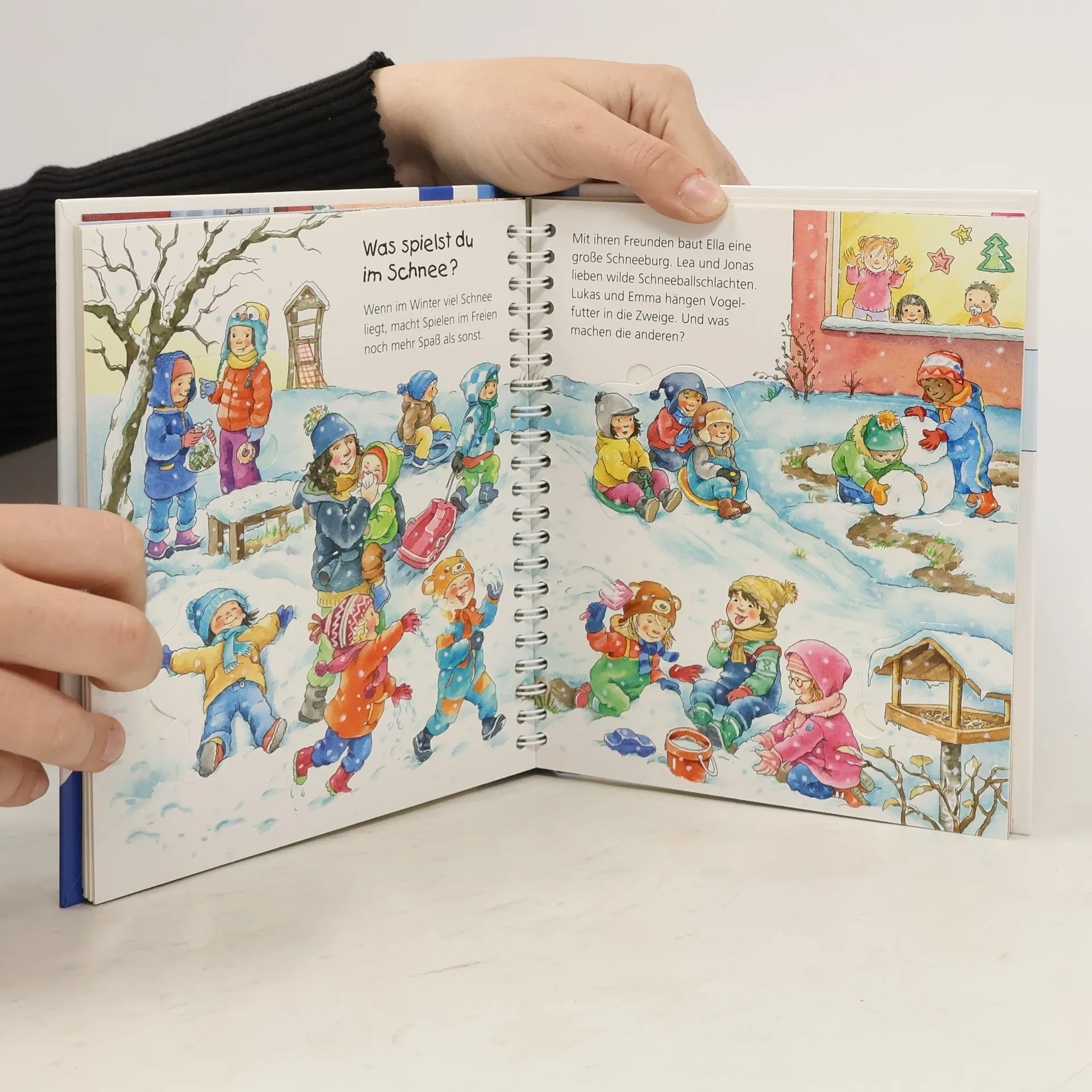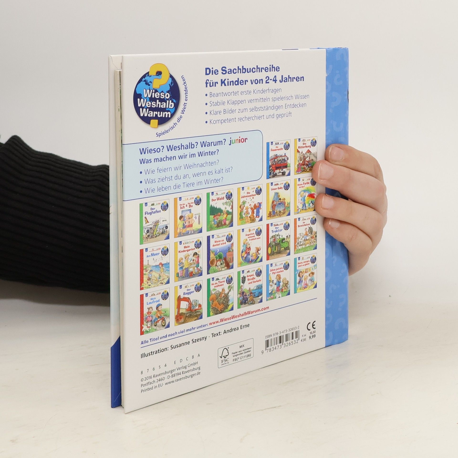 Plätzchen backen, Schlitten fahren, einen Schneemann bauen, Weihnachten und Fasching feiern – die Zwillinge Ella und Jonas lieben den Winter! Das Buch zeigt Kindern, wie sich in dieser Jahreszeit die Natur verändert, wie die Tiere sich daran anpassen und was wir Menschen im Winter gerne unternehmen und feiern. Und was machen wir im Frühling, Sommer und Herbst? Das verraten die weiteren Bände dieser Jahreszeiten Serie von Wieso? Weshalb? Warum? Wieso? Weshalb? Warum? junior Die Sachbuchreihe für Kinder von 2-4 Jahren Jeden Tag entdecken Kinder etwas Neues – und haben viele Fragen. Wann kommt die Feuerwehr? Was machen die Tiere im Winter? Warum muss ich Zähne putzen? Die beliebte Sachbuchreihe Wieso? Weshalb? Warum? junior beantwortet die Fragen der Kinder auf Augenhöhe. Sie beleuchtet unterschiedlichste Themen aus ihrer Alltags- und Interessenswelt altersgerecht und mit viel Liebe zum Detail. Die Reihe ist speziell auf kleine Hände und die Bedürfnisse der Kleinsten angepasst. Klare und liebevolle Bilder, kurze Sachtexte sowie handliche Klappen, die Bewegungen veranschaulichen und überraschende und lustige Einblicke gewähren, ermöglichen Kindern, sich ihre Themen selbst zu erschließen. Der Spaß am eigenhändigen Entdecken, die liebevolle Umsetzung und die hochwertige Ausstattung garantieren langanhaltende Freude an jedem Buch.