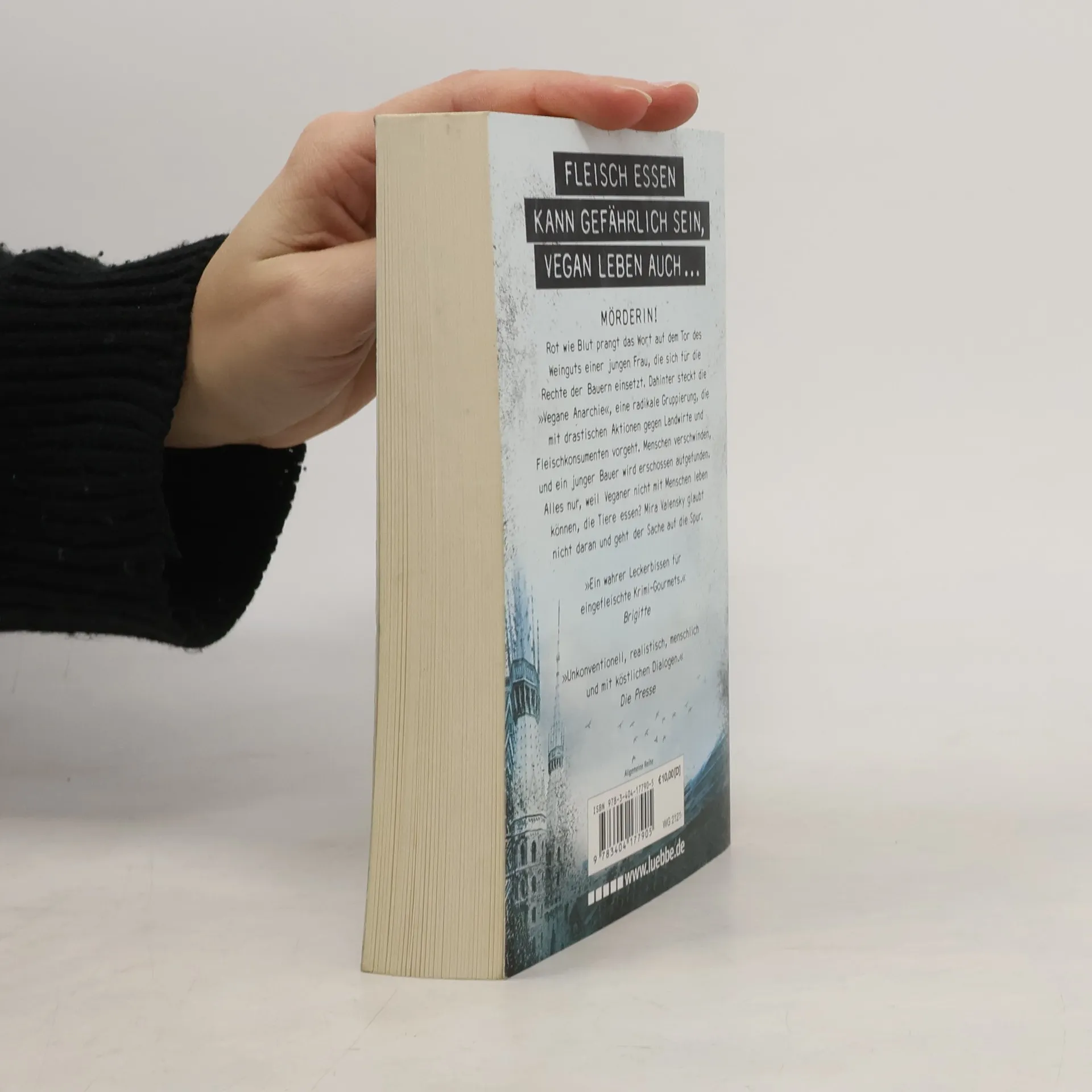 Mörderin! Rot wie Blut prangt das Wort auf dem Tor des Weinguts einer jungen Frau, die sich für die Rechte der Bauern einsetzt. Dahinter steckt die »Vegane Anarchie«, eine radikale Gruppierung, die mit drastischen Aktionen gegen Landwirte und Fleischkonsumenten vorgeht. Menschen verschwinden, und ein junger Bauer wird erschossen aufgefunden. Alles nur, weil Veganer nicht mit Menschen leben können, die Tiere essen? Mira Valensky glaubt nicht daran und geht der Sache auf die Spur.