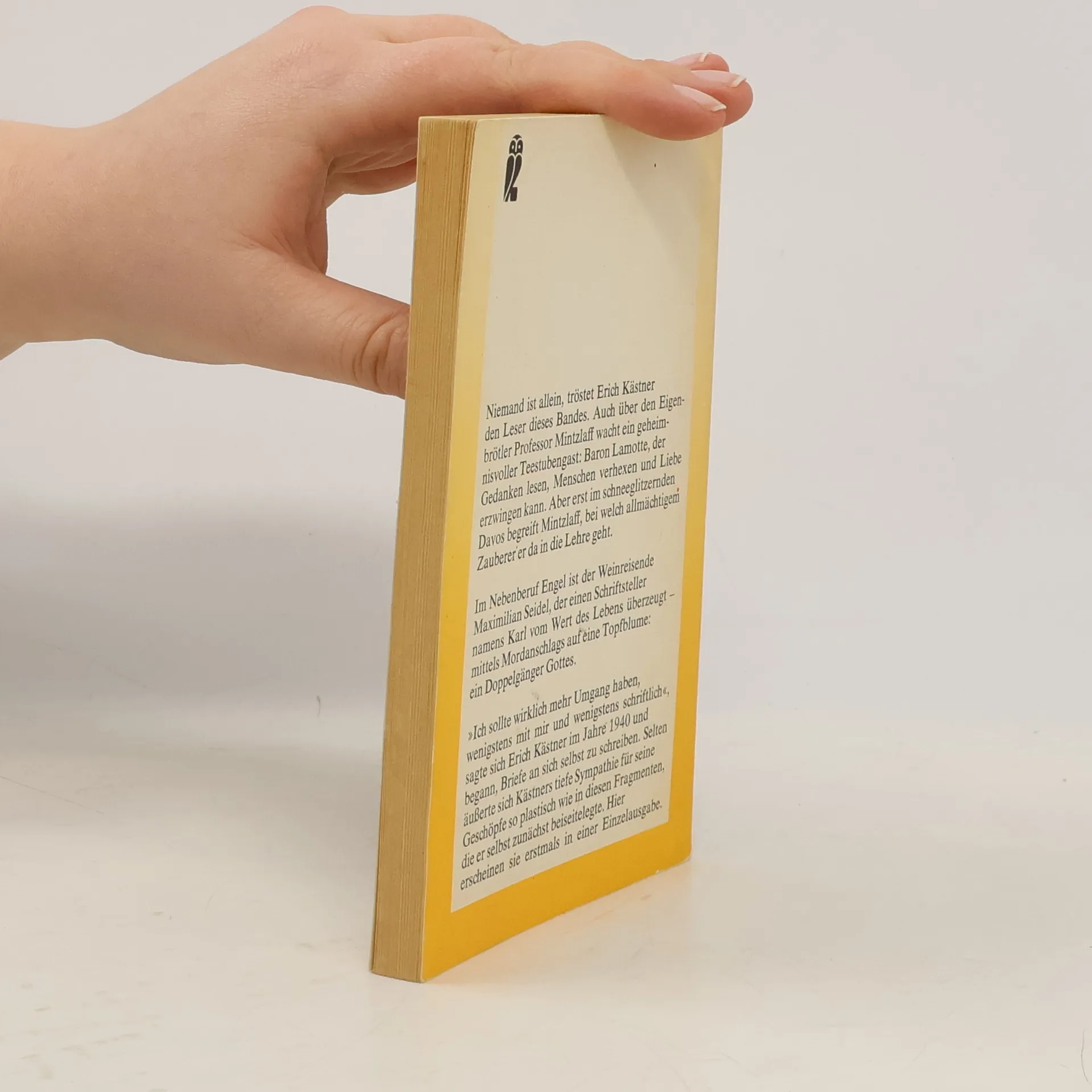 Erich Kästners erstaunlichstes Buch enthält zwei unvollendete Romane und zwei Briefe über Menschen, die sich im Leben plötzlich selbst über den Weg laufen. Der Kunsthistoriker Professor Mintzlaff reist in die Schweiz, um einen Vortrag zu halten. In einer Teestube setzt sich ein gewisser Baron Lamotte an seinen Tisch und berichtet, Gedanken lesen zu können. Irritiert versucht Mintzlaff, den seltsamen Mann loszuwerden. Lamotte lässt sich aber nicht abschütteln und begleitet den Professor ins schneeglitzernde Davos, wo die beiden nicht nur Mintzlaffs ewiger Liebe begegnen, sondern auch seinem Doppelgänger. Mintzlaffs Welt steht Kopf. Als Lamotte immer öfter wahrhaft olympische Kräfte spielen lässt, macht Mintzlaff eine verblüffende Entdeckung...Enthä Zauberlehrling, Die Doppelgänger, Briefe an mich selber