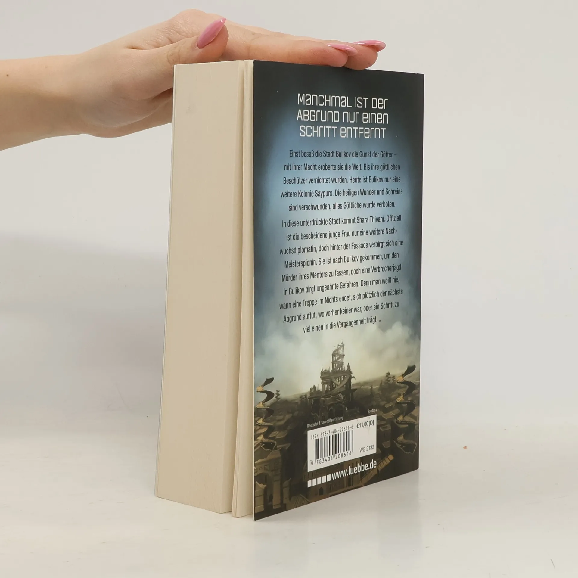 Manchmal ist der Abgrund nur einen Schritt entfernt Einst besaß die Stadt Bulikov die Gunst der Götter. Bis diese getötet wurden. Mit ihnen verschwanden ihre göttlichen Wunder und Schreine. Bulikov blieb als zerbrochene Stadt zurück. Tausende Treppen führen heute ins Nichts, ein quälendes Mahnmal vergangener Größe und Überlegenheit. Als ihr einstiger Mentor ermordet wird, reist Shara Thivani nach Bulikov. Offiziell ist die junge Frau nur eine weitere Nachwuchsdiplomatin, doch hinter der Fassade verbirgt sich eine Meisterspionin. Sie will unbedingt den Mord an ihrem Mentor aufklären, der in Bulikov war, um über dessen göttliche Geschichte zu forschen - etwas, das den Einwohnern von Bulikov unter Todesstarfe verboten ist. Bald gerät Shara in ein Netz aus Intrigen und auf die Spur eines lange verschütteten Geheimnisses. »Robert Jackson Bennett verdient eine große Leserschaft — dieses Buch wird sie ihm verschaffen.« — Brent Weeks