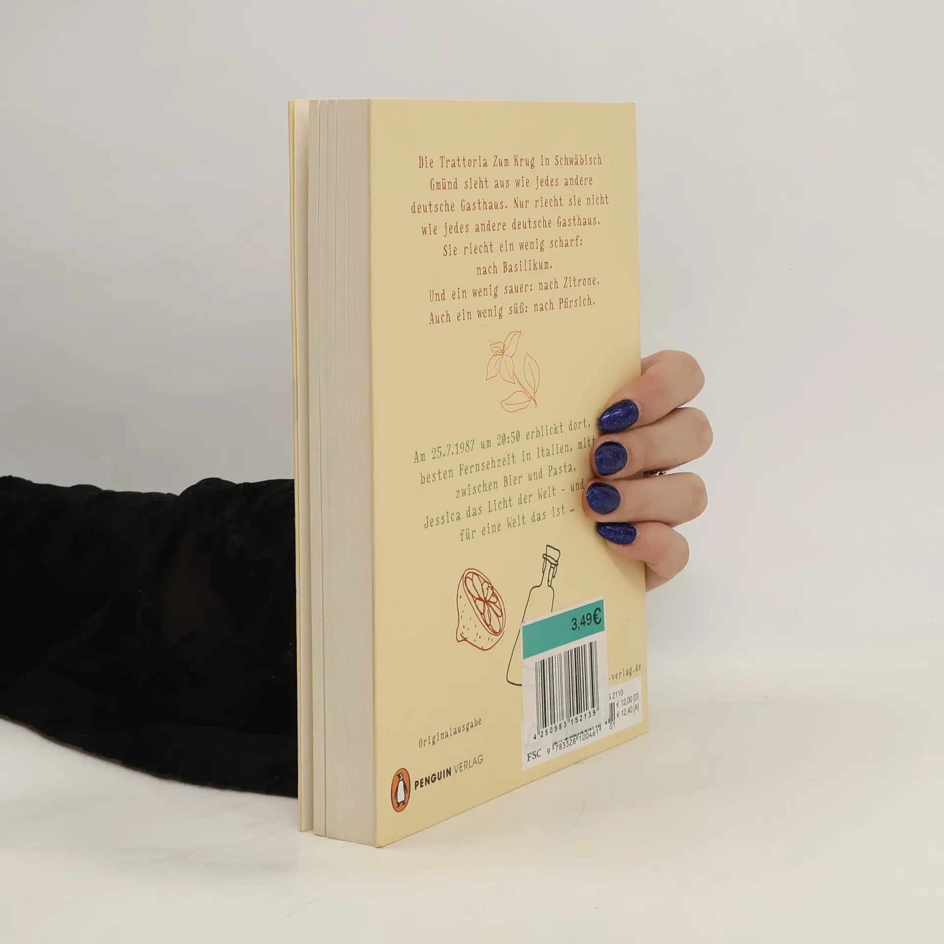 Schwäbisch Gmünd, 1987. In der Trattoria »Zum Krug« rufen die Gäste nach Weizenbier und Calzone. Tiziana, die Wirtin, ist im siebten Monat schwanger. Da passiert es: Papa Renzo kann gerade noch eine Tischdecke unter seine Frau schieben, und schon ist Jessica auf der Welt. Kaum geboren, gehört sie zur Einrichtung, und eine Zufallsgemeinschaft aus gemütlich-dicken Hausfrauen, Thekenleichen und warmherzigen Ami-Nutten wird ihre große Familie. Sie alle sind dabei, als Jessica laufen lernt, den ersten Kuss bekommt, wie sie Pesto mit Sahne kocht, so wie es die Deutschen mögen – und wie sie immer wieder darüber staunt, welch irrwitzige Wendungen das Glück im Leben so nimmt.