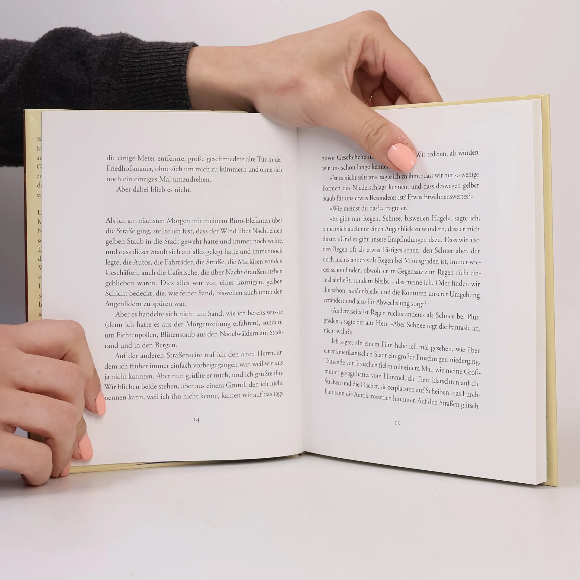 Wenn einer von einem fremden alten Mann von der Parkbank geschubst wird, auf die eine Sekunde später ein schwerer Glasglobus mit Metallfuß kracht, fängt er an sich zu wundern. War das Absicht, dass der Alte ihn gerettet hat? (Andernfalls wäre er ja tot gewesen, erschlagen von der Welt.) Und wer ist der Mann mit dem grauen Mantel, der jetzt dauernd auftaucht und Nähe sucht, ganz allgemein zu den Menschen, zum Erzähler aber im Besonderen? Er zieht in Hauswänden Schubladen auf, die vorher nicht da waren und in denen sich Welten verstecken, von denen auch niemand eine Ahnung hatte. Er lässt die steinernen Löwen vor der Feldherrnhalle durch Reifen springen und dirigiert kleine Regenwolken bei heiterstem Himmel herbei – und das ist alles nur der Anfang einer so großartigen wie versponnenen Geschichte voll seltsamster Ereignisse. Dieser melancholische Alte, der gerne ein Glas Champagner trinkt: Ist das Gott, der die Einsamkeit des Universums satt hat? Ist es möglich, dass einmal nicht die Menschen Trost bei Gott suchen, sondern er bei ihnen? Ausgerechnet in diesen Zeiten? Oder, mehr noch, sogar Verzeihung, Versöhnung angesichts der eigenen unvollkommenen Schöpfung? Gott: ein Spieler, ein Künstler, ein reuiger Mann? In diesem Fall gibt es einiges zu besprechen. Und zu bestaunen, in den Tagen mit Gott.