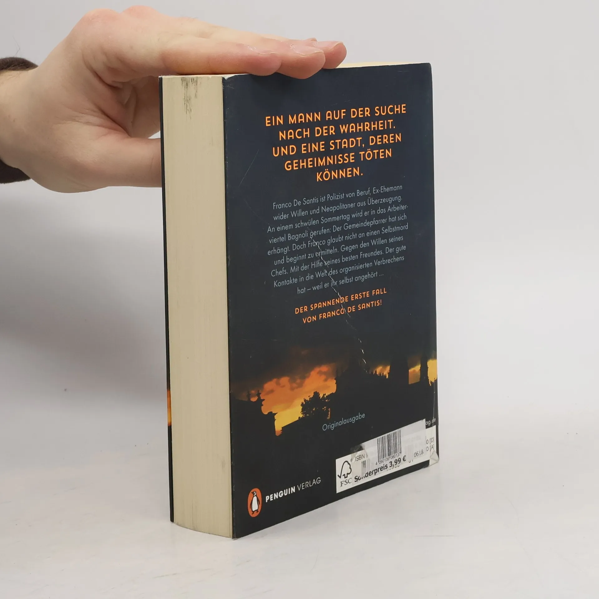 Franco De Santis ist Polizist von Beruf, Neapolitaner aus Überzeugung und Ex-Ehemann wider Willen. Jeden Sonntag fährt er in das Nobelviertel der Stadt, um seinen Schwiegereltern eine glückliche Ehe vorzuspielen. Doch an diesem schwülen Sommertag wird er in den Arbeiterstadtteil Bagnoli gerufen: Der Gemeindepfarrer hat sich erhängt. Franco kennt ihn seit der Kindheit und weiß, wenn er an eines glaubte, dann an das Leben. Gegen den Willen seines Vorgesetzten beginnt Franco zu ermitteln. Doch in einer Stadt, in der der Schein trügt und der Tod Alltag ist, ist die Suche nach der Wahrheit gefährlich ...