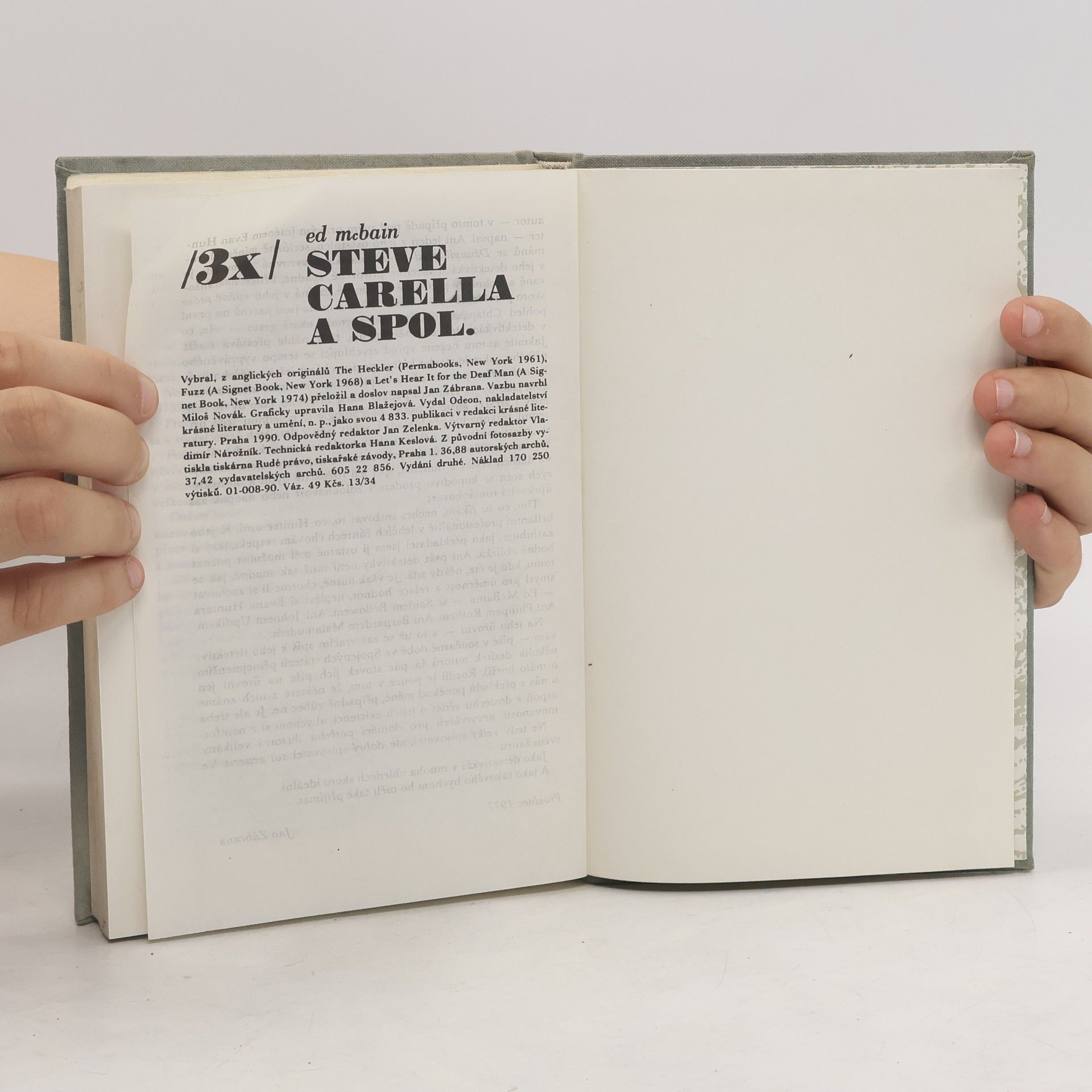 Z více než tří desítek autorových detektivních románů o 87. revíru amerického velkoměsta, v nichž vystupuje tým známých detektivů, byly do svazku vybrány ty, jež spojuje postava domněle nedoslýchavého zločince. Volná trilogie obráží brutální tvář americké velkoměstské zločinnosti. Provokatér (The Heckler, 1960) Poldové (Fuzz, 1968) Není hluchý jako hluchý (Let's Hear It for the Deaf Man, 1973)